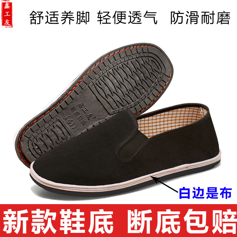 【제조업체 판매】전통 베이징 천신발 남성용 두꺼운 소가죽 밑창 검정 천신발 여성용 부드러운 밑창 작업화 편안함