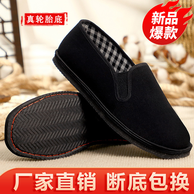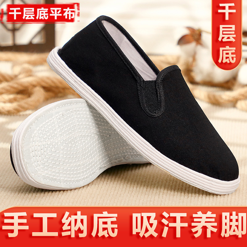 【제조업체 판매】전통 베이징 천신발 남성용 두꺼운 소가죽 밑창 검정 천신발 여성용 부드러운 밑창 작업화 편안함스토어 가기