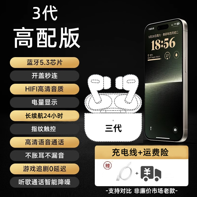 블루투스 헤드셋 무선 Huaqiang 북쪽 소음 감소 원래 정품 2024 새로운 iphone15 Apple pro2 에 적합