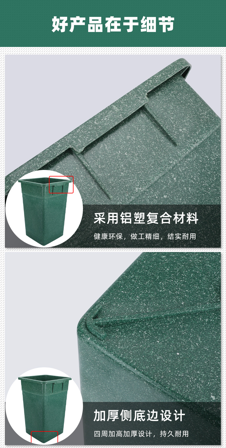 야외 쓰레기통 라이너 내부 배럴 알루미늄-플라스틱 복합 사각 껍질 상자 위생 공원 분류 튜브 야외 신제품스토어 가기