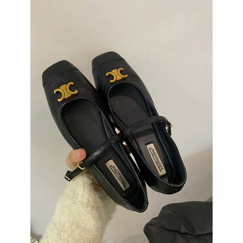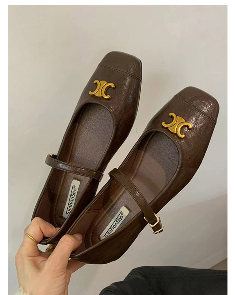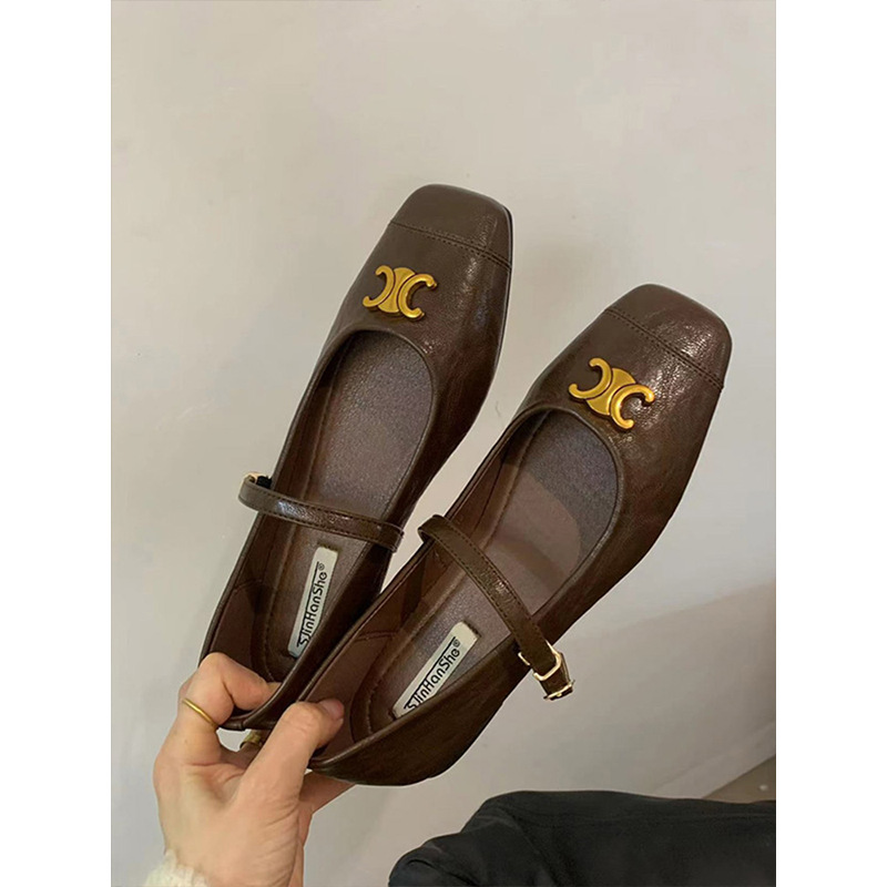 양가죽 버전! 프랑스 스타일의 우아한 레트로 가죽 신발 여성 싱글 레이어 신발 스퀘어 발가락 여성 플랫 2024 봄과 가을 무당 신발스토어 가기