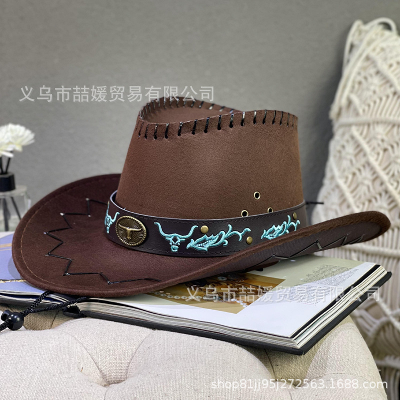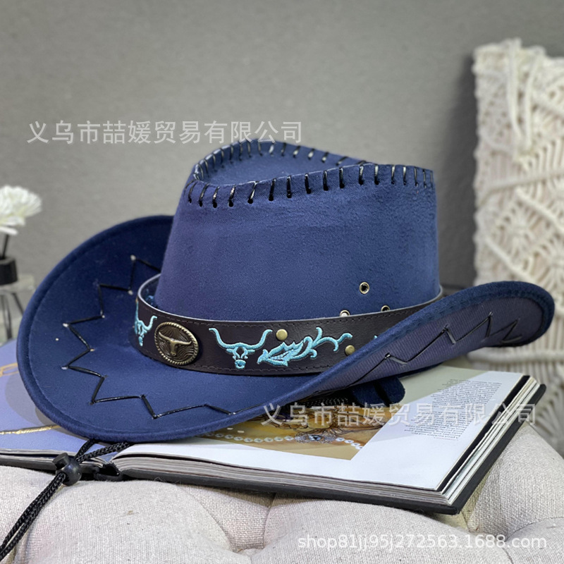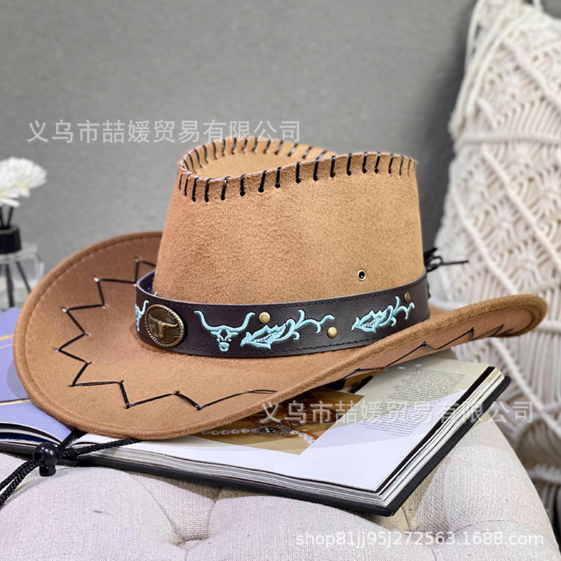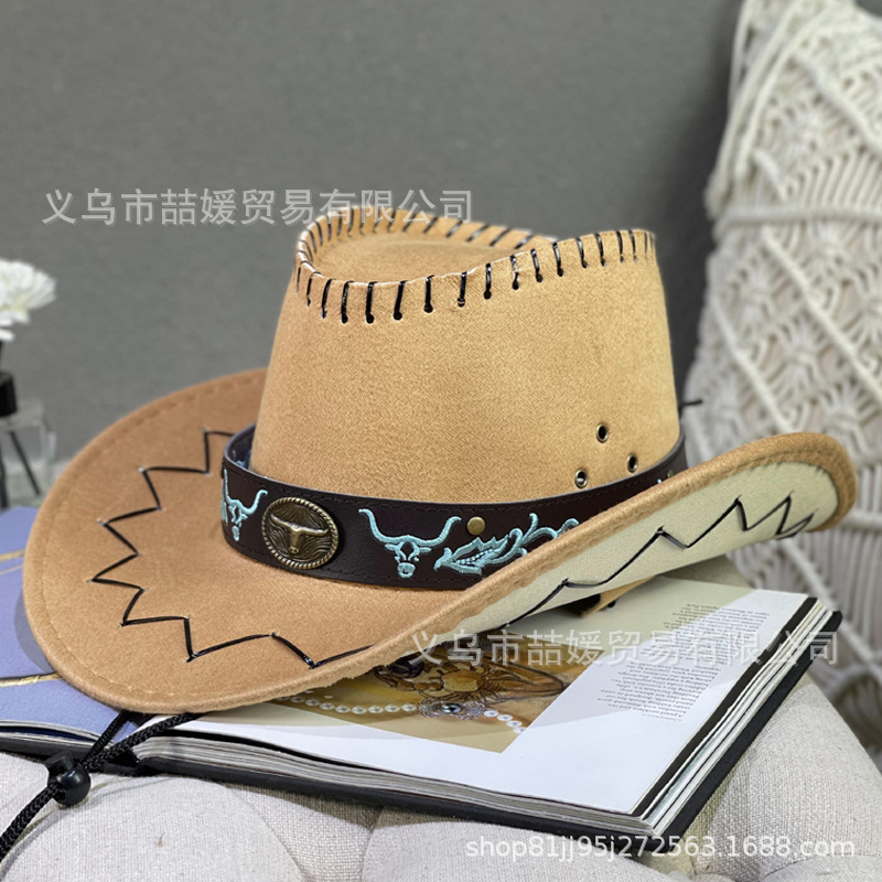 Ngau Tau 자수 벨트 서부 카우보이 모자 남녀 국경 패션 공연 토퍼 모자 봄과 여름 야외 여행 등산 모자