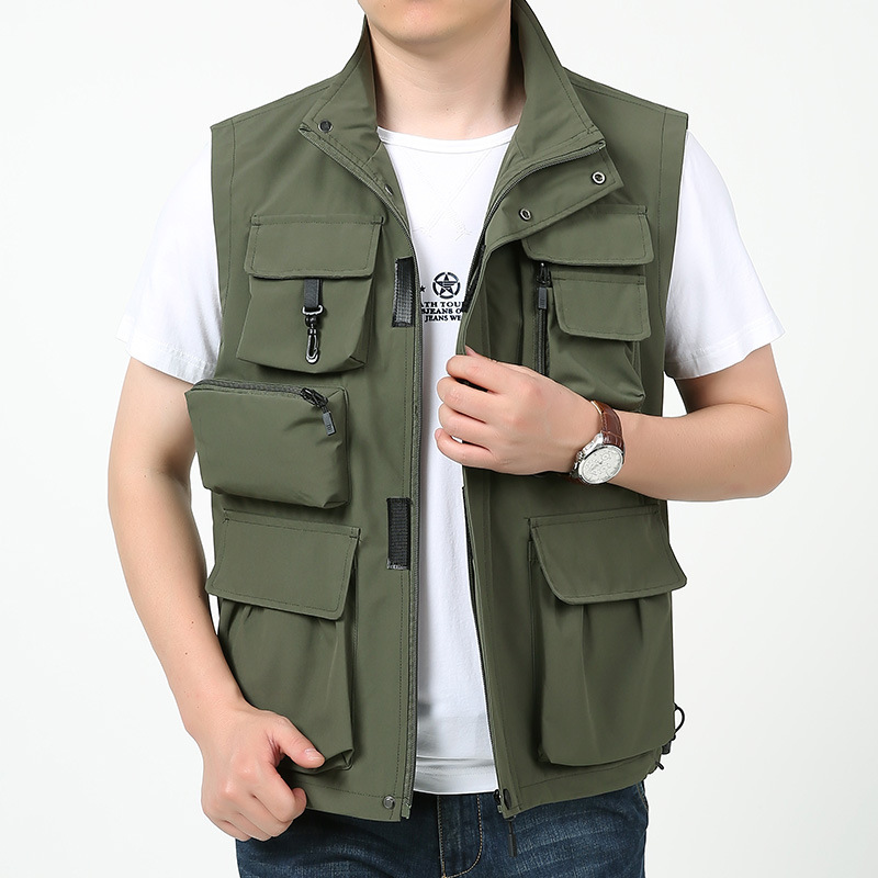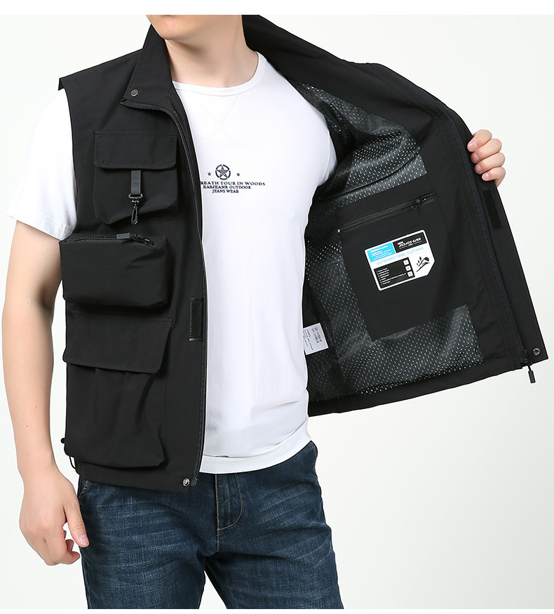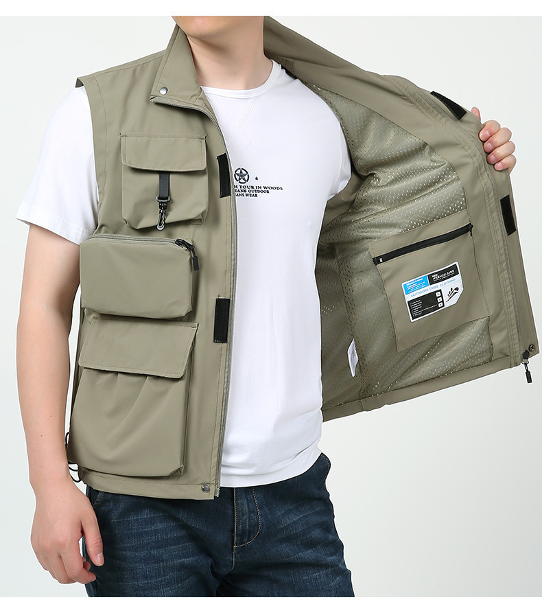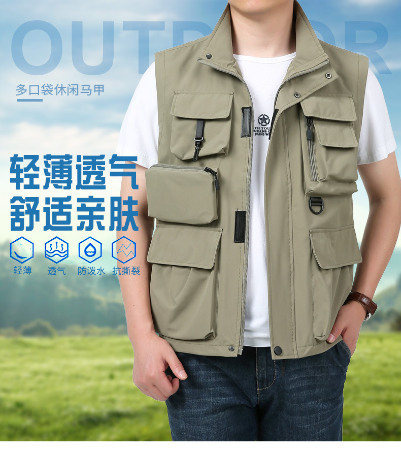 조끼 남자의 느슨한 캐주얼 멀티 포켓 작업복 봄 및 가을 얇은 그룹 구매 등산 플러스 사이즈 낚시 옷스토어 가기