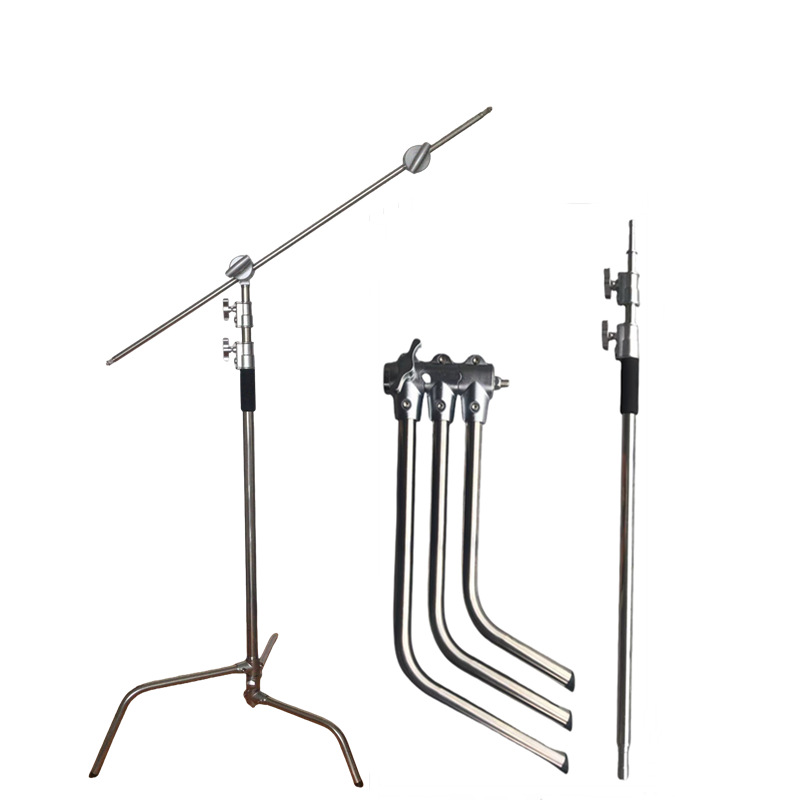 사진 매직 다리 램프 스탠드 C 형 스테인레스 스틸 삼각대 전문 비디오 플래시 브래킷 플래그 플레이트 스탠드