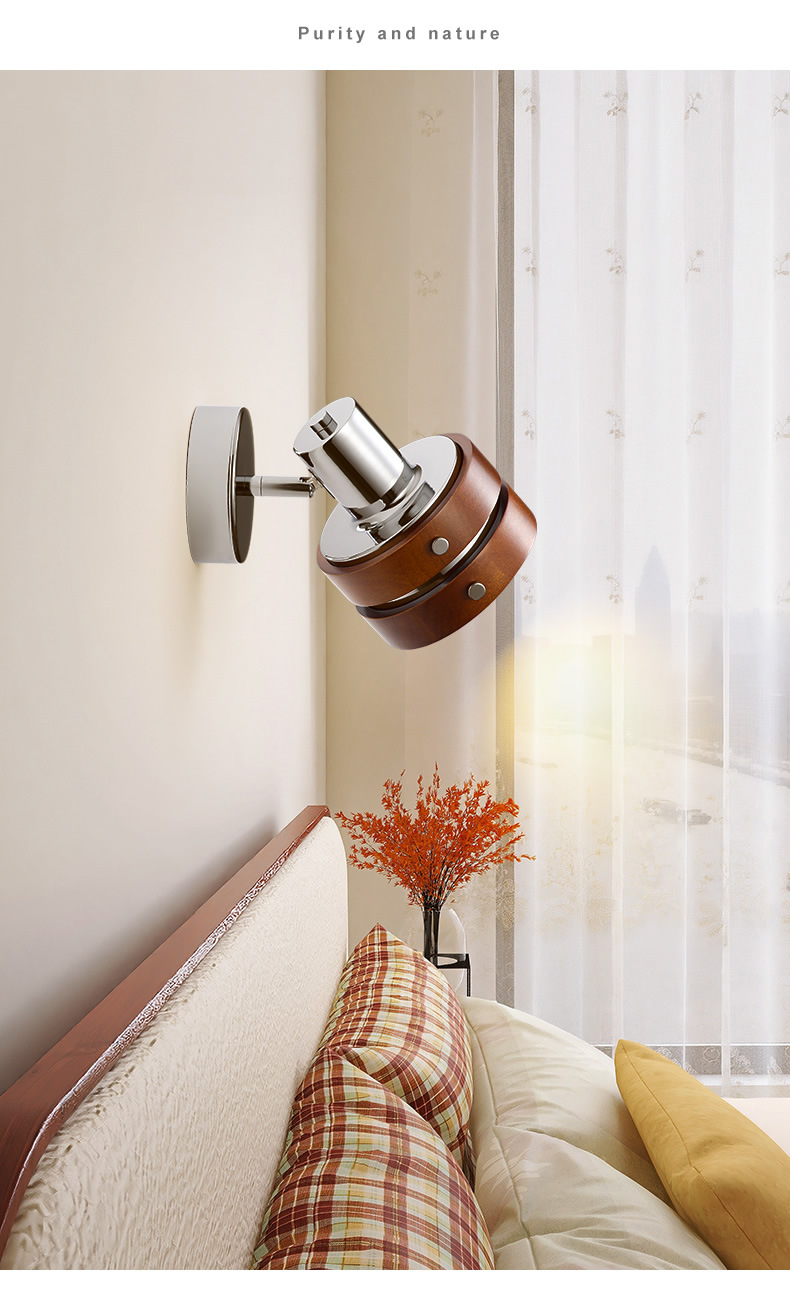 프랑스 작은 벽 램프 고대 단단한 나무 호두 색상 조용한 바람 침실 침대 옆 램프 펑크 바람 배경 벽 장식 램프스토어 가기