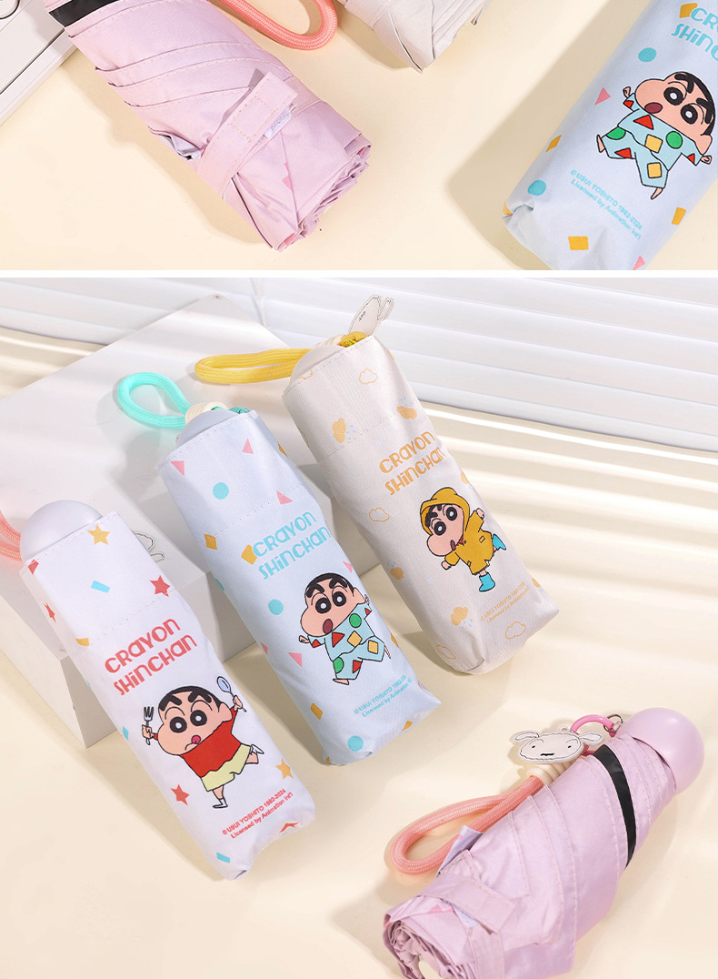 짱구 정품 승인 50% 접이식 포켓 태양 우산 소녀 선 스크린 UV 보호 소형 휴대용 양산 우산스토어 가기