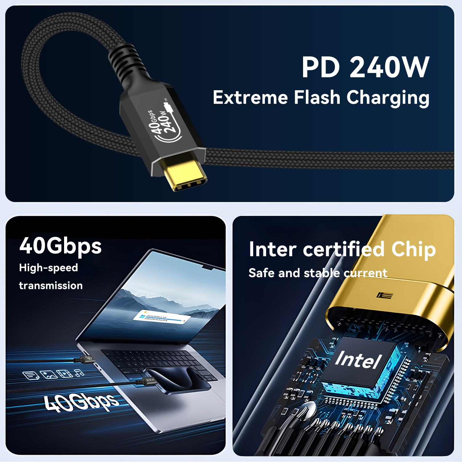 USB4 충전 케이블 유형-c 데이터 케이블 PD240W40Gbp 전송 HD 비디오 케이블 맥 데이터