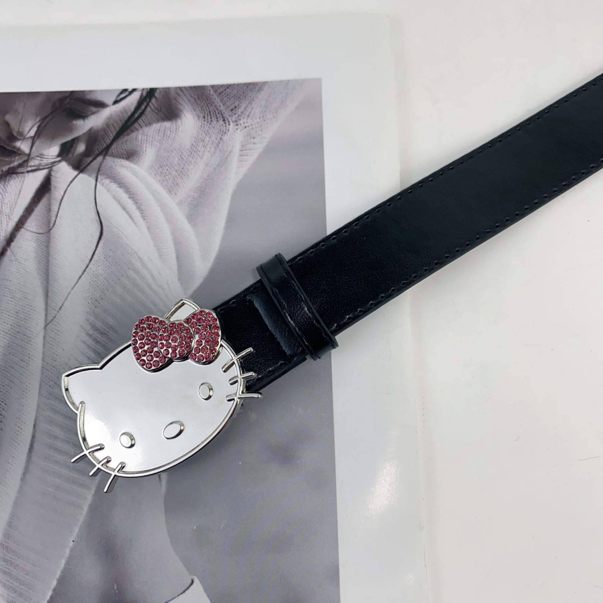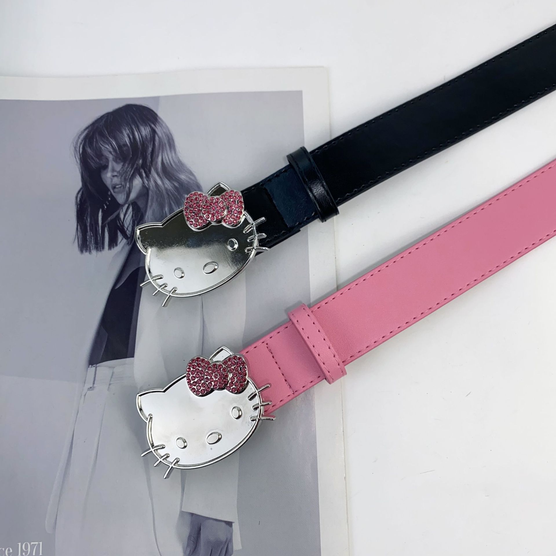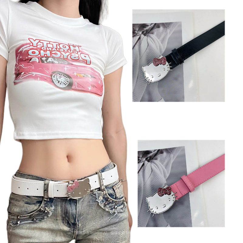 귀여운 KT 고양이 달콤한 쿨 스파이스 소녀 y2k 헤드 벨트 만화 하위 문화 PU 가죽 벨트 소녀 데님 액세서리 벨트스토어 가기