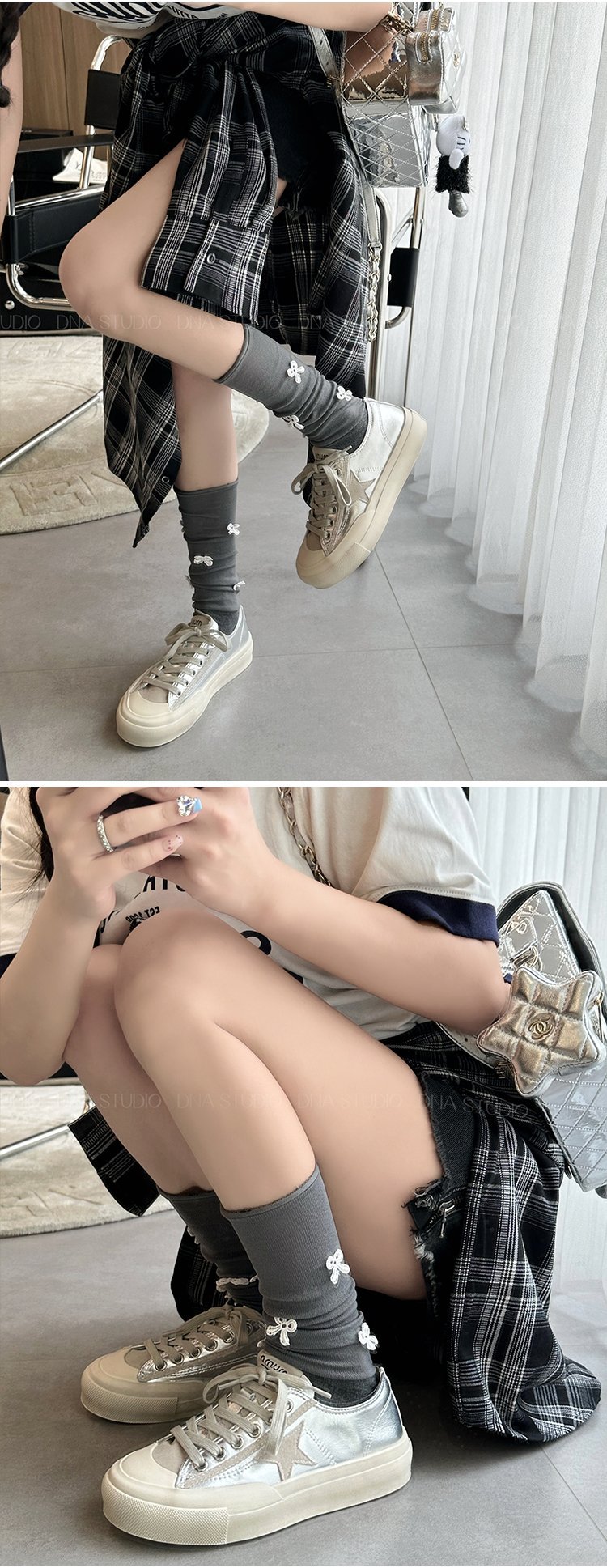 실버 고민 스타 보드 신발 여성의 2024 새로운 여름과 가을 두꺼운 밑창 운동화 캐주얼 통기성 패션 흰색 신발스토어 가기