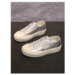 실버 고민 스타 보드 신발 여성의 2024 새로운 여름과 가을 두꺼운 밑창 운동화 캐주얼 통기성 패션 흰색 신발