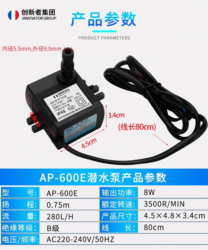 • (에어컨 팬) 0.75M 헤드 AP-600E 과열 방지 모델, 프리 호스 1m