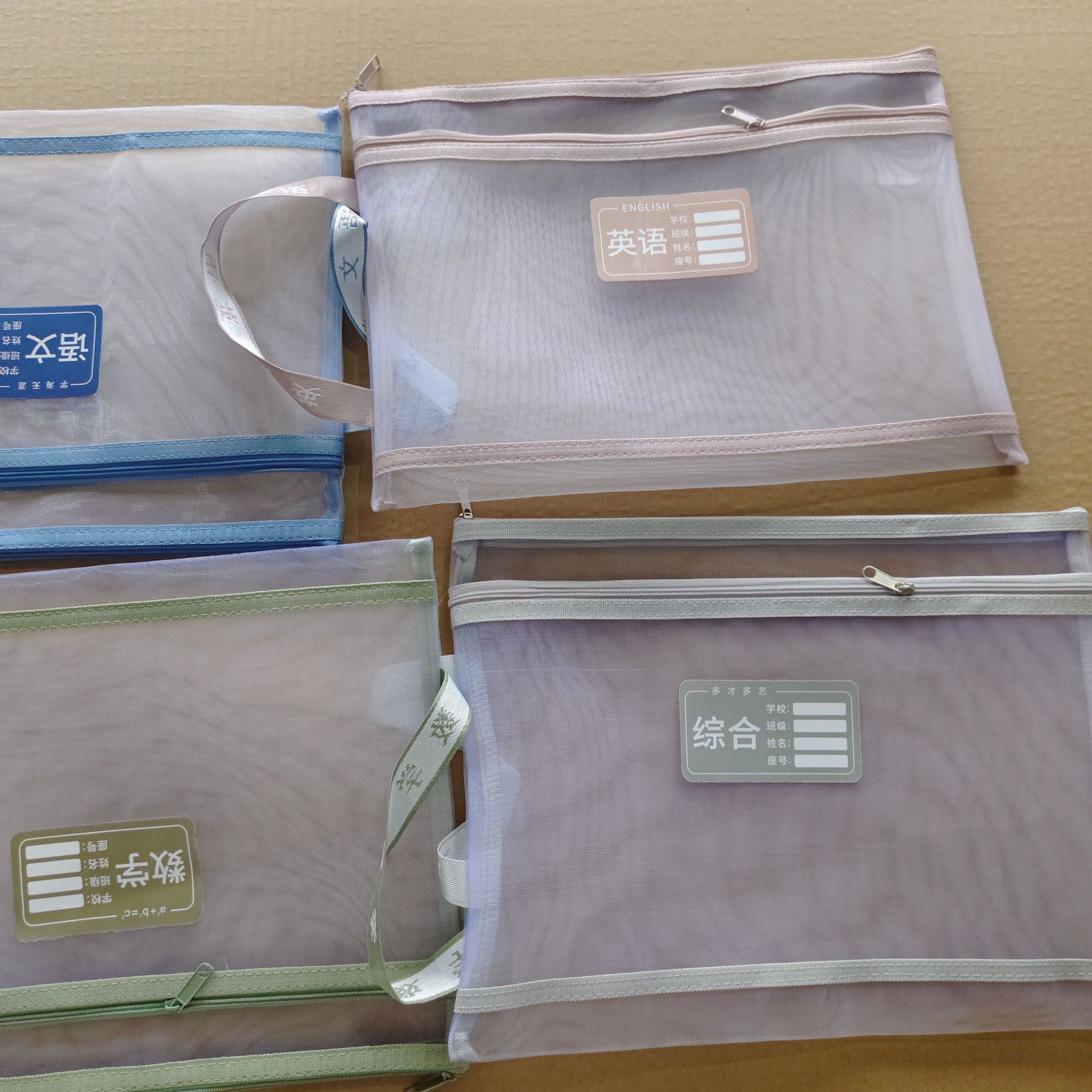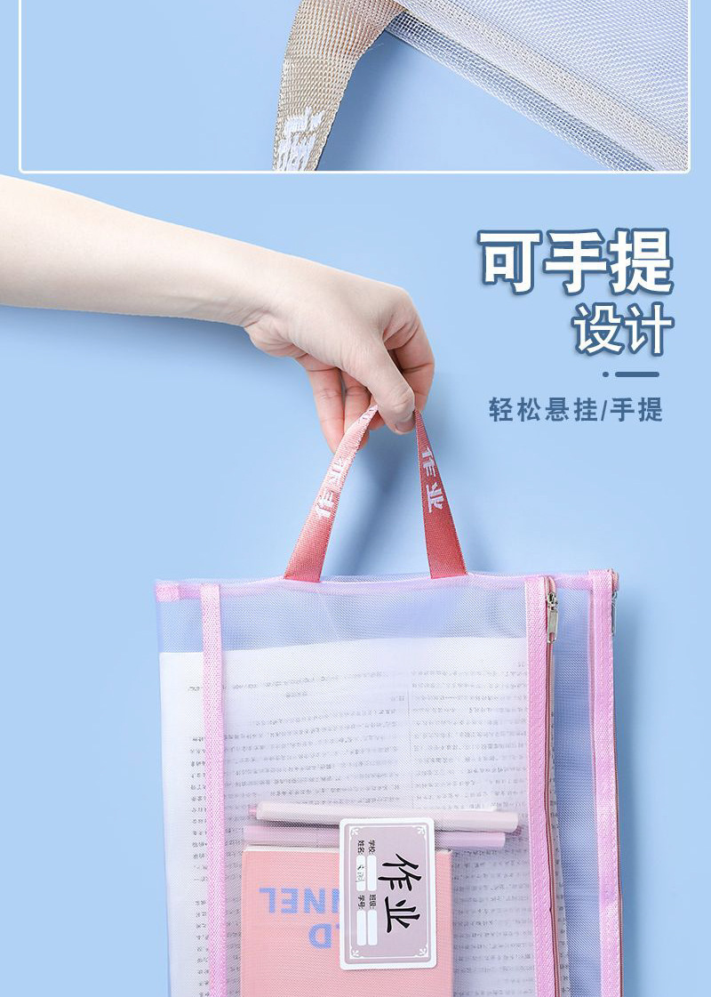 A4 과목 가방 휴대용 메쉬 분류 파일 가방 지퍼형 학생용 중국어 수학 영어 시험지 과목 분류 보관 가방