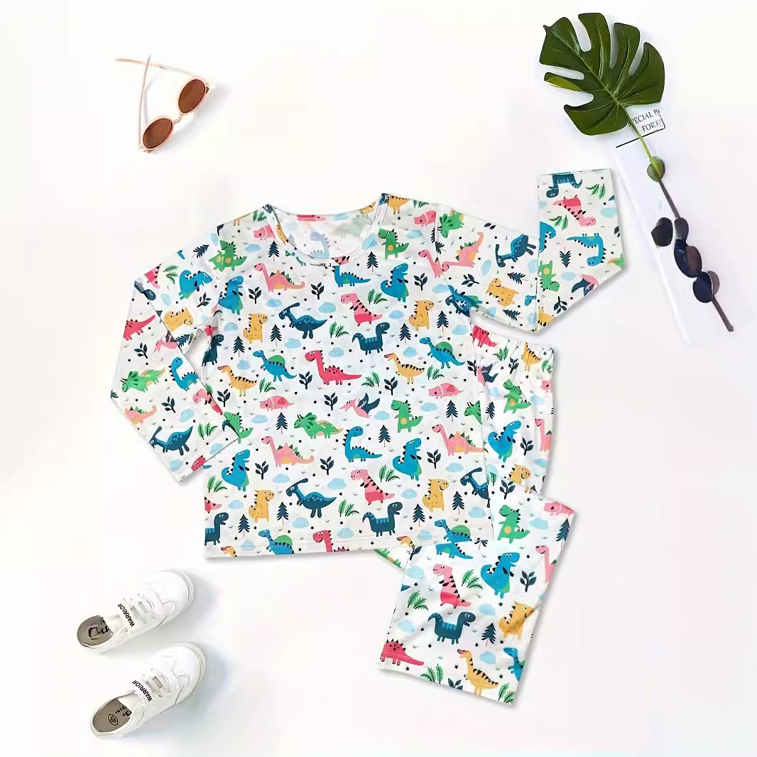 새로운 어린이 크루 넥 가을베이스 속옷 세트 크고 큰 소년과 소녀 만화 공룡 인쇄 잠옷 홈 옷
