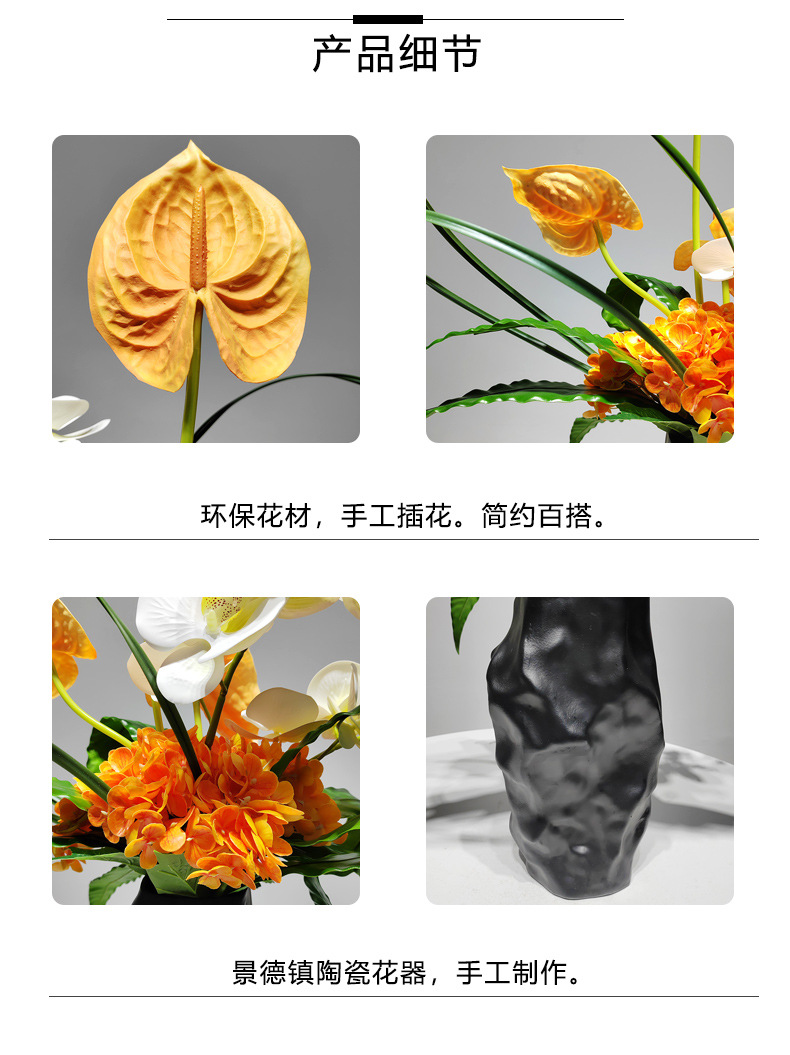 새로운 중국 스타일 패키지 꽃병 세트 거실 데스크탑 시뮬레이션 꽃 부드러운 장식 식탁 모델 룸 장식품