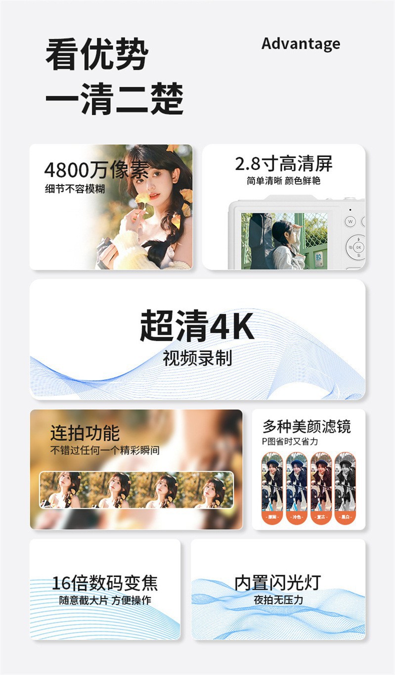 국경 간 새로운 2.8 인치 HD 4K 디지털 카메라 가정 학생과 어린이를위한 범용 다기능 휴대용 카메라스토어 가기