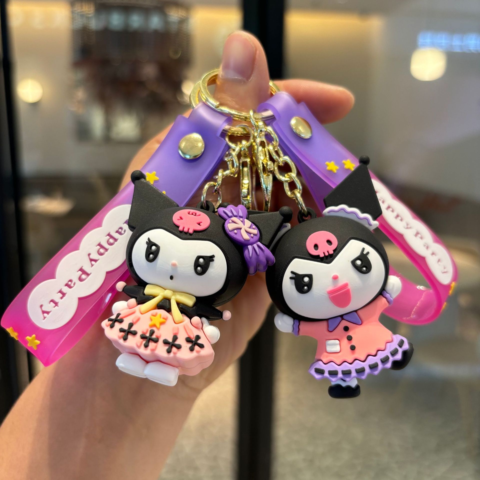 만화 Sanrio Kulomi 키 체인 pvc 인형 펜던트 잡기 아기 기계 작은 선물 열쇠 고리 장식품 도매
