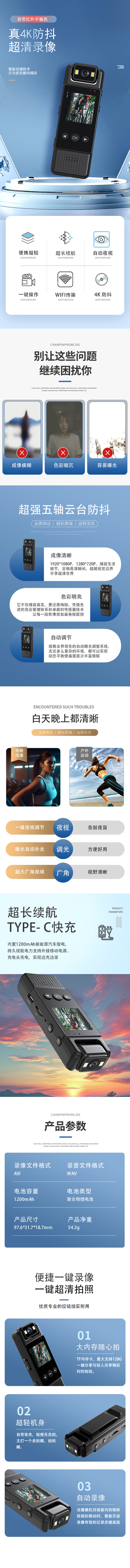 4k HD 웨어러블 스포츠 카메라 오토바이 타고 법 집행 낚시 레코더 오디오 및 비디오 카메라 흔들림 방지스토어 가기