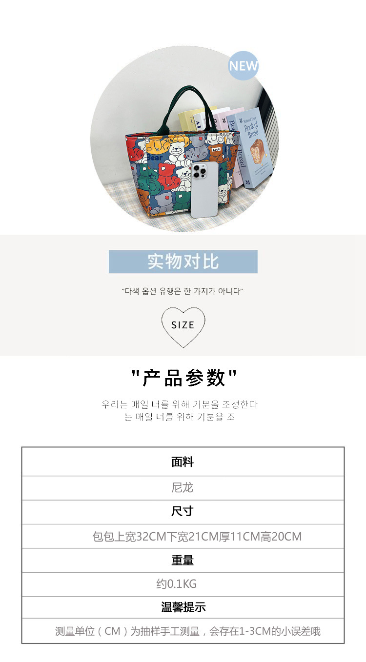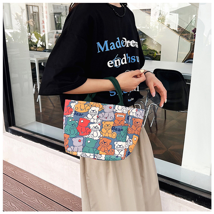 2024 새로운 패션 만화 두꺼운 핸드백 대용량 편리한 도시락 가방 점심 가방 소녀 어깨 가방스토어 가기