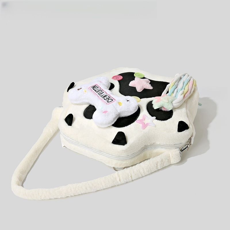 높은 Yan 가치 틈새 배낭 육각형 성격 Y2K 암소 봉제 가을과 겨울 거리 소녀 부드러운 여자를위한 귀여운 배낭