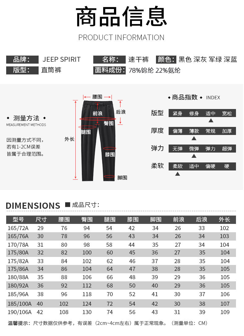JEEP SPIRIT 남성 허리 스트레치 스트레이트 튜브 빠른 건조 캐주얼 바지 JPKZ89021스토어 가기
