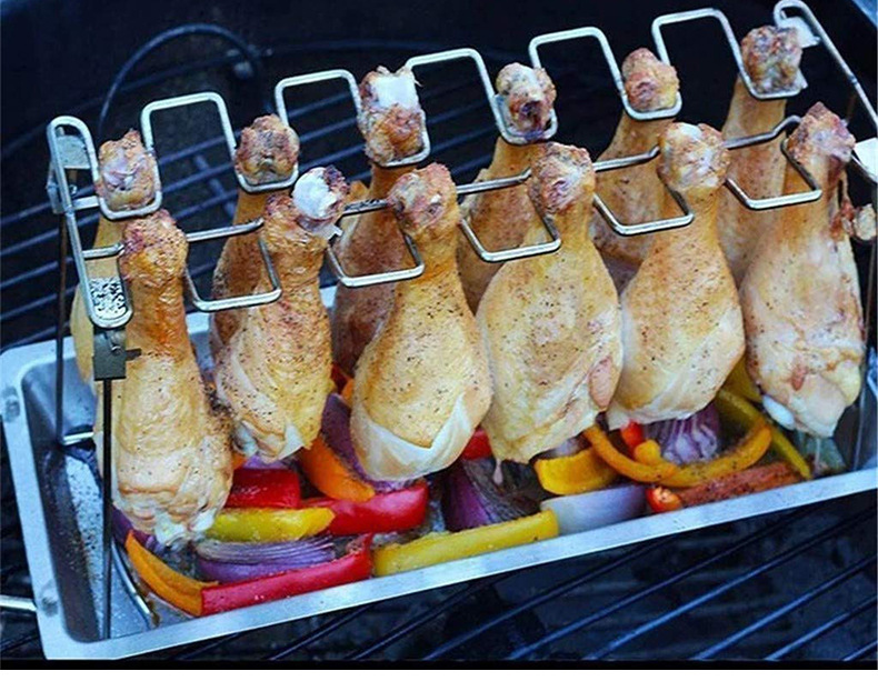 14 슬롯 스테인레스 스틸 치킨 다리 랙 접이식 휴대용 바베큐 랙 그릴 바베큐 치킨 바베큐 도구 야외 그릴 랙