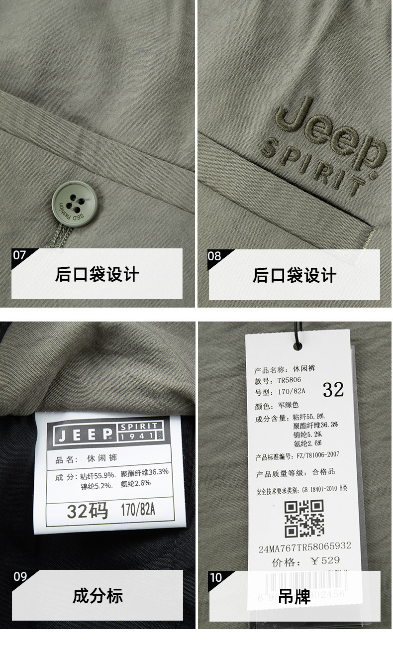 JEEP SPIRIT 봄과 가을 슬림 탄성 허리 남성 캐주얼 바지 TR5806 세대