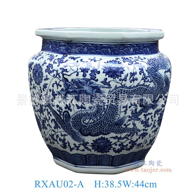 产 品 名 称:青花缠枝莲龙纹八角缸