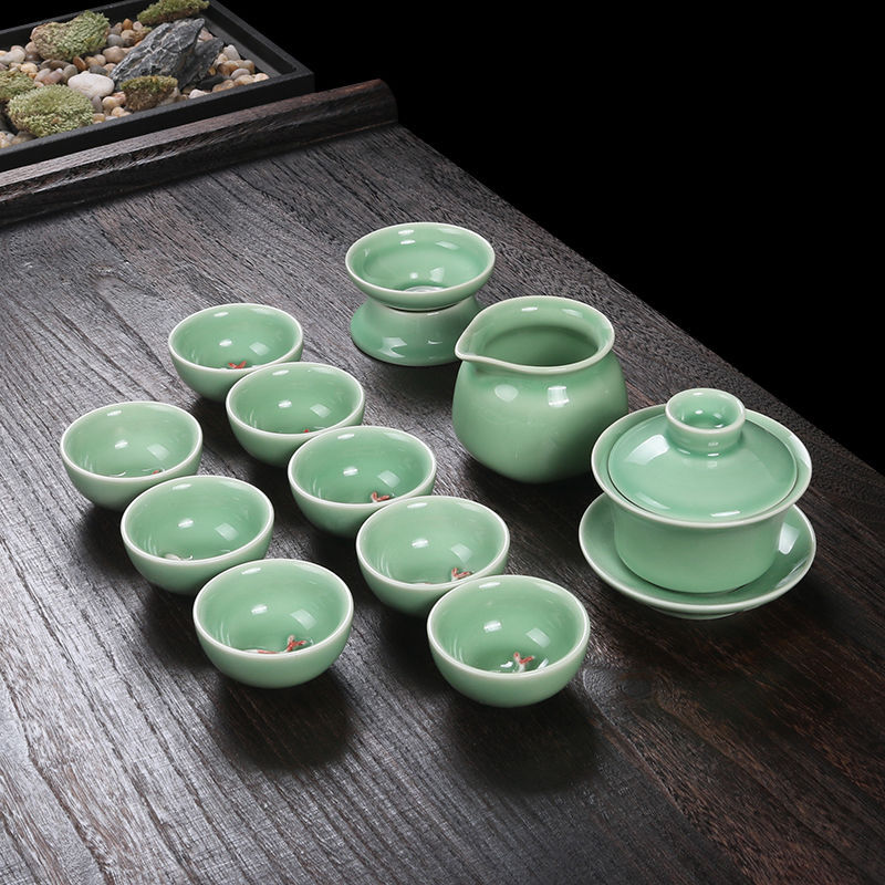 청자 잉어 컵 쿵푸 차 세트 세라믹 가정용 차 메이커 주전자 커버 그릇 티 컵 세트