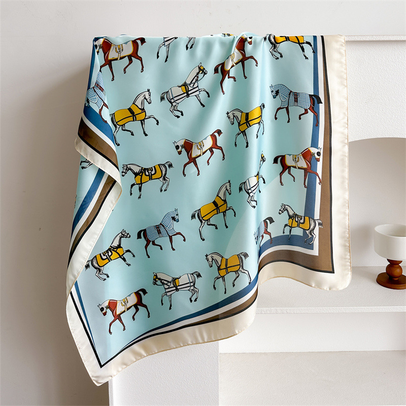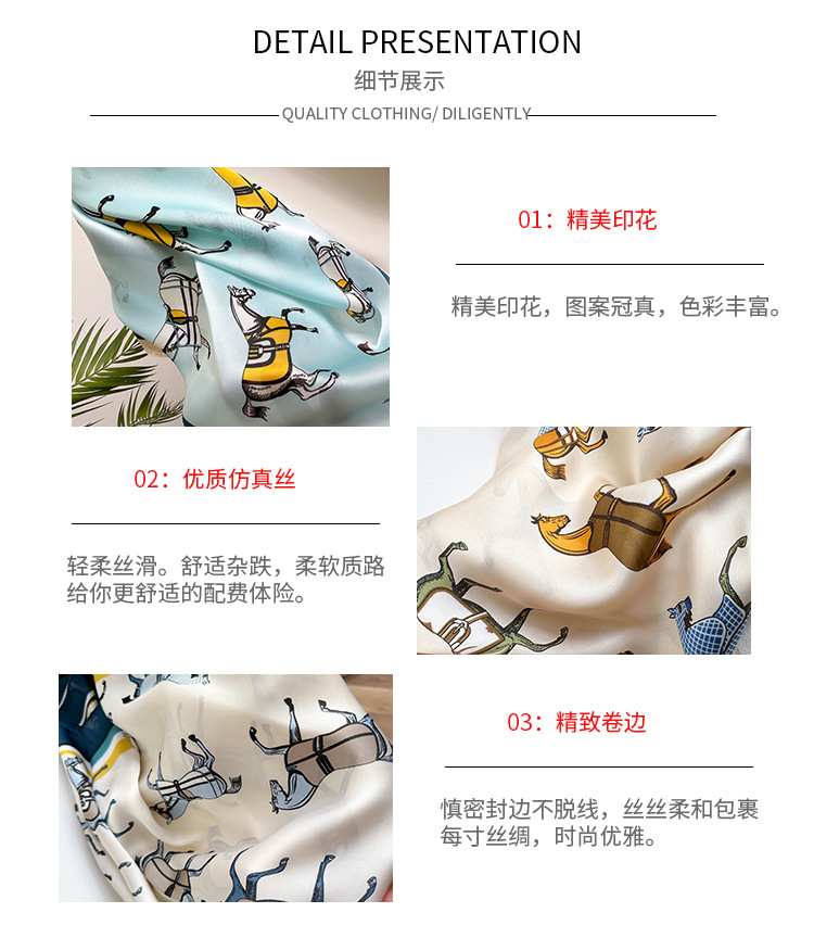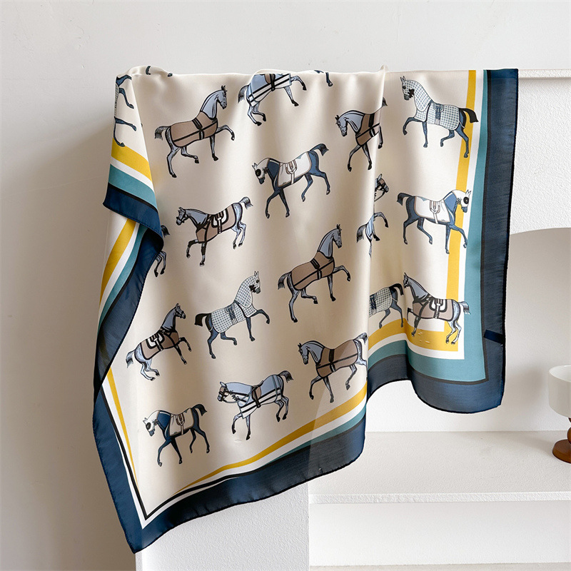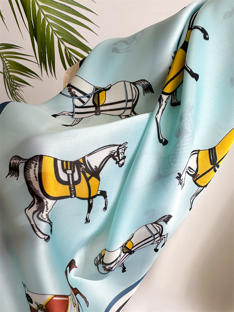 새로운 뜨거운 판매 말 작은 광장 스카프 실크 같은 인쇄 실크 스카프 여성의 봄과 여름 스카프 우아한 올 매치 장식 스카프
