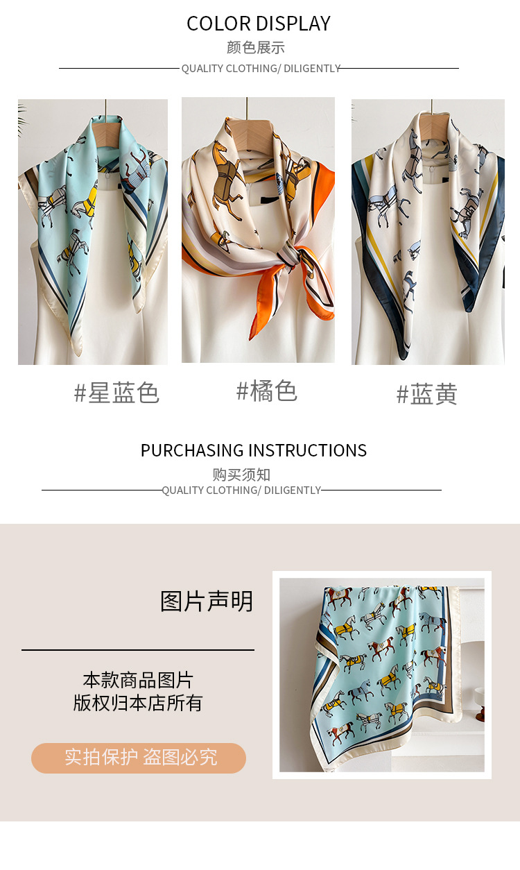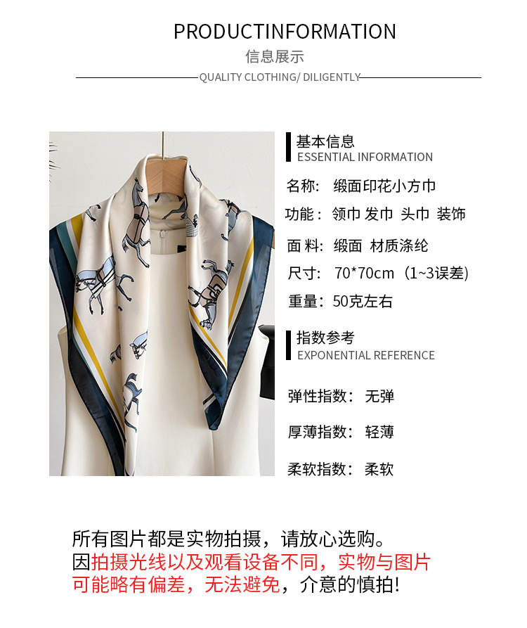 새로운 뜨거운 판매 말 작은 광장 스카프 실크 같은 인쇄 실크 스카프 여성의 봄과 여름 스카프 우아한 올 매치 장식 스카프스토어 가기