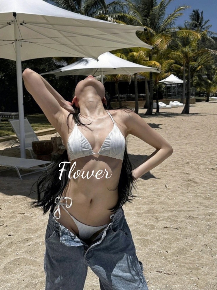 春夏新款BIKINI白色防晒衬衫三件套分体温泉度假泳衣少女拍照泳衣