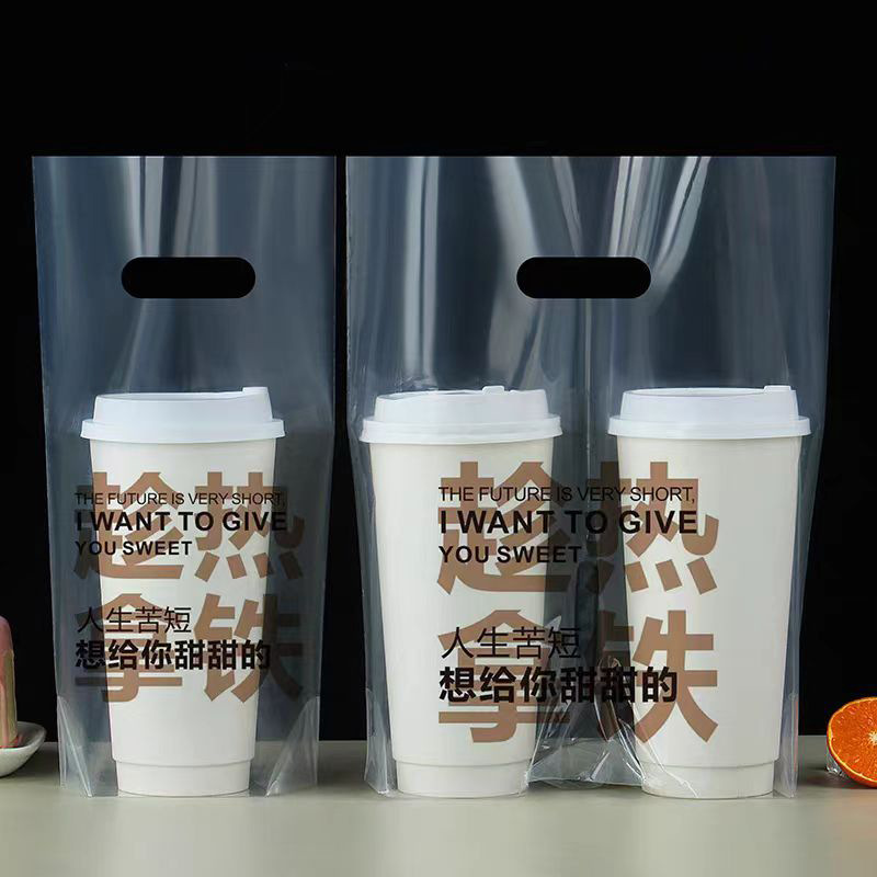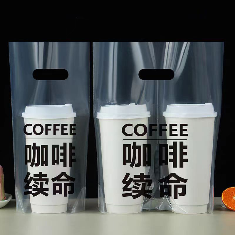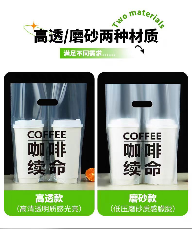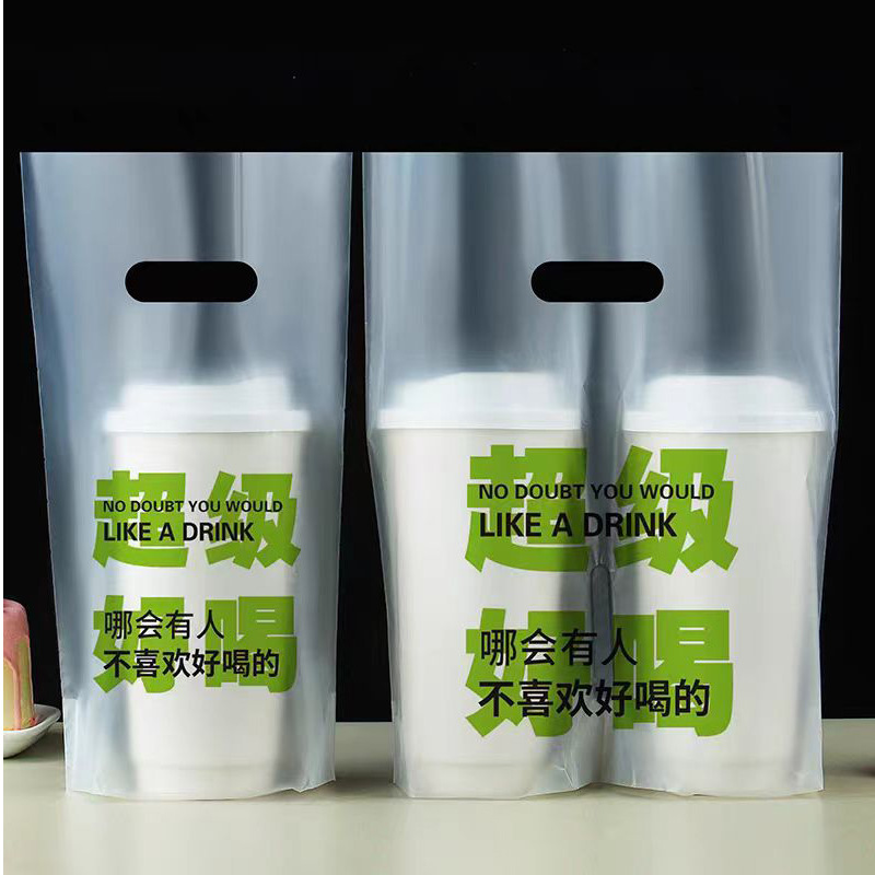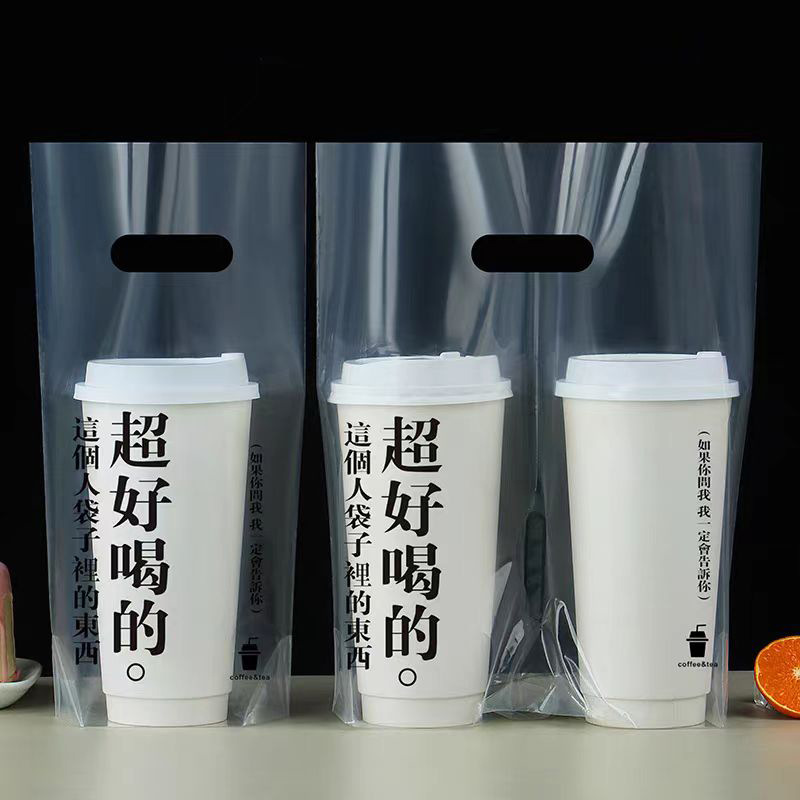 플라스틱 백, 밀크티 포장 백, 고투명 단일컵/이중컵, 반투명 커피 테이크아웃 일회용 손잡이 가방