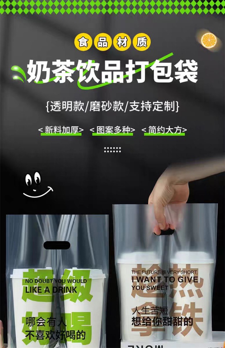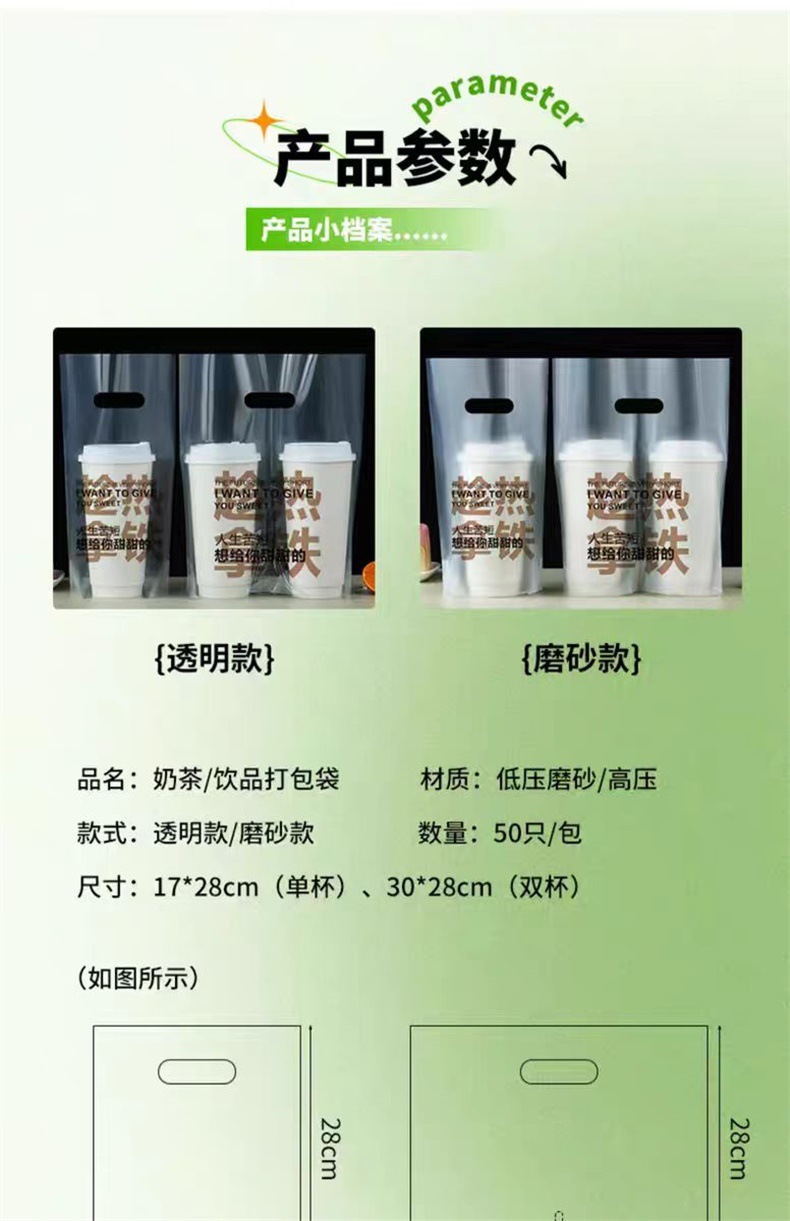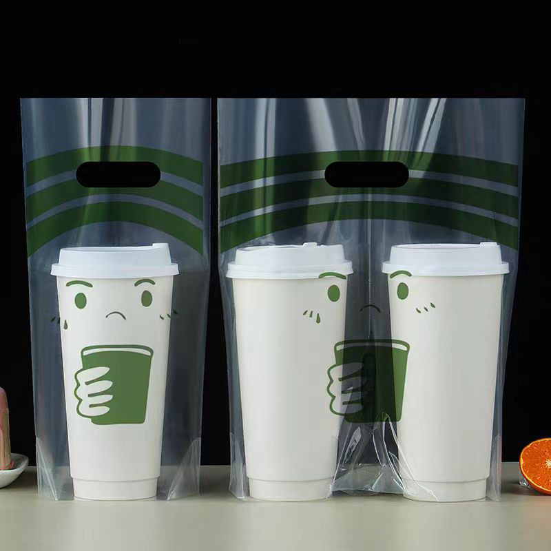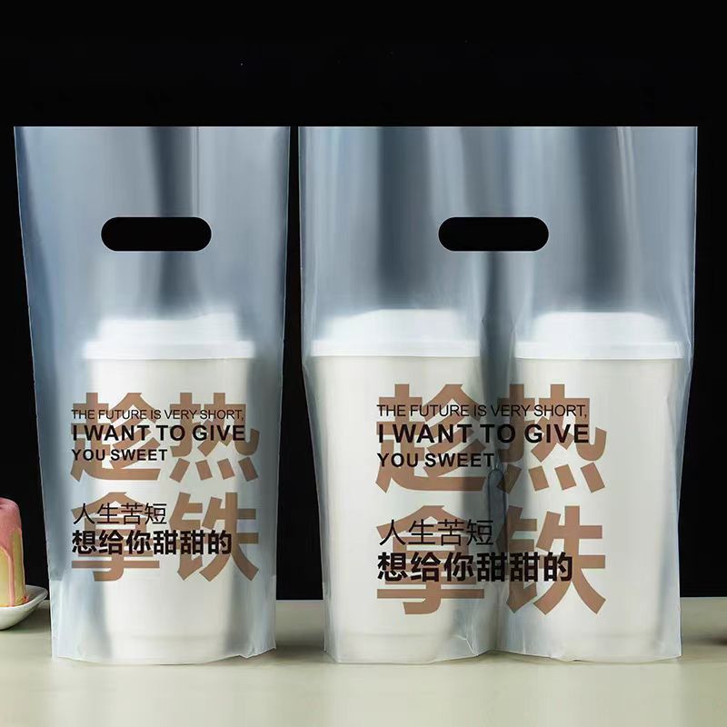 플라스틱 백, 밀크티 포장 백, 고투명 단일컵/이중컵, 반투명 커피 테이크아웃 일회용 손잡이 가방