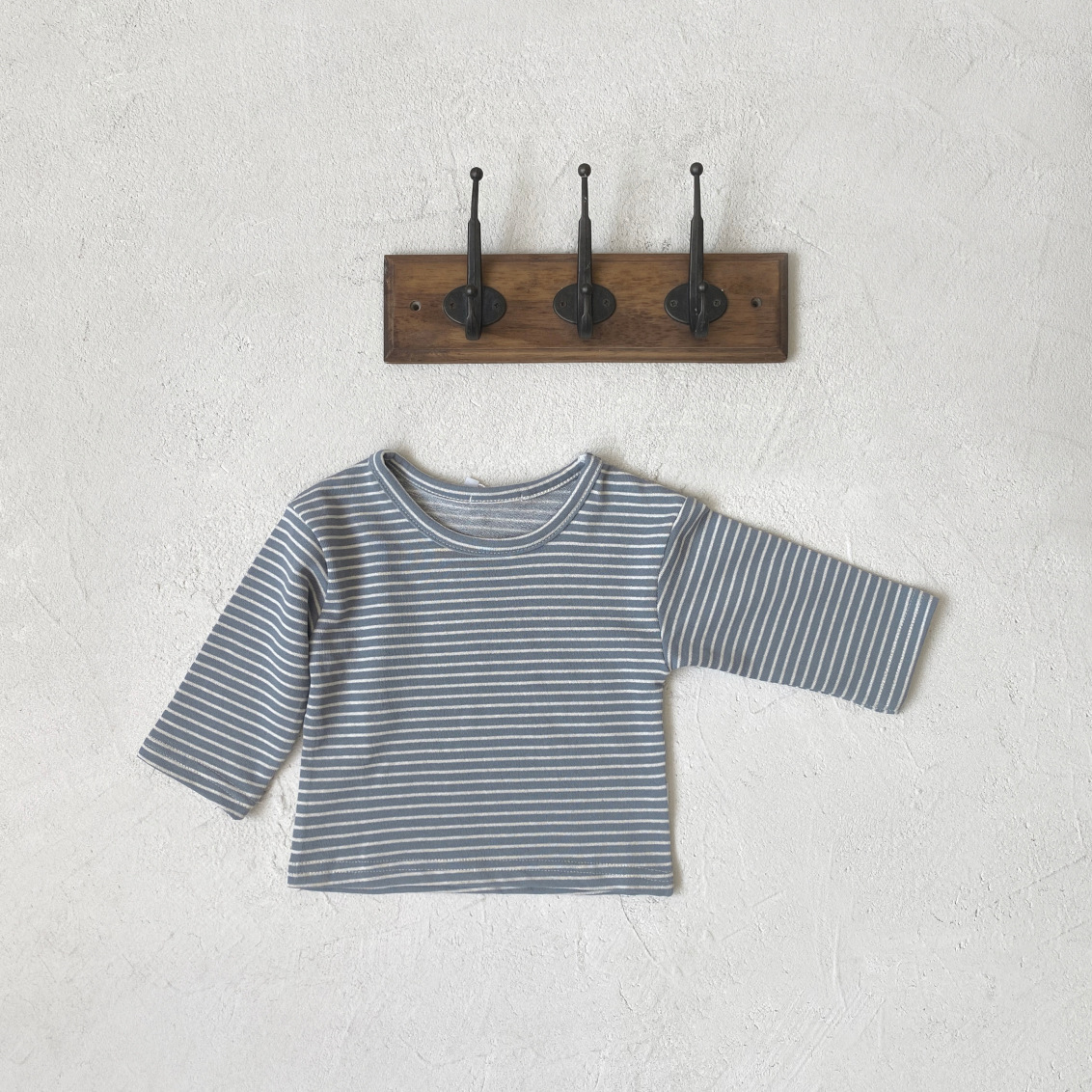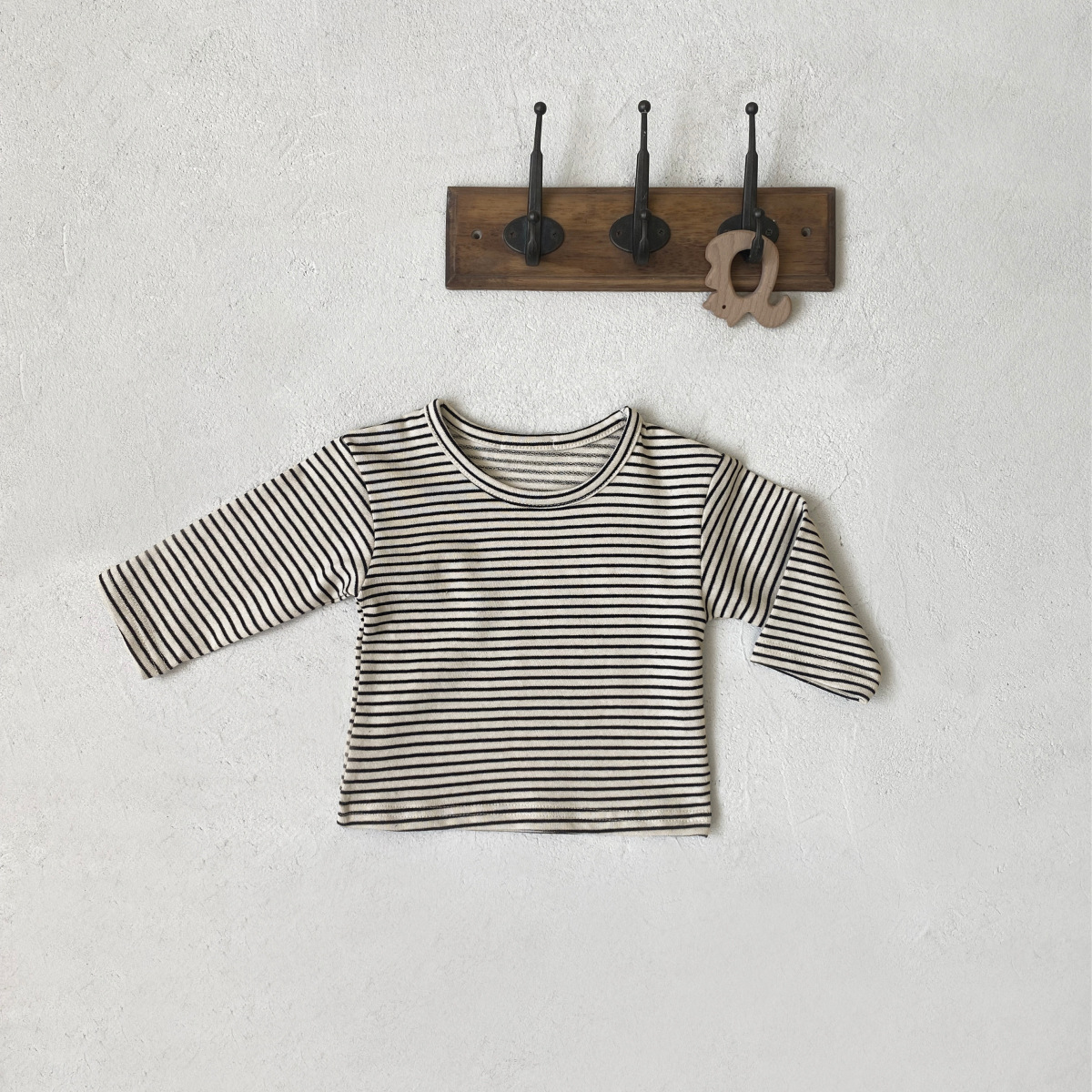 가을 2024 소년과 소녀 패션 느슨한 줄무늬 캐주얼 긴 소매 라운드 넥 티셔츠 아기 1-3 세 아기 탑스토어 가기