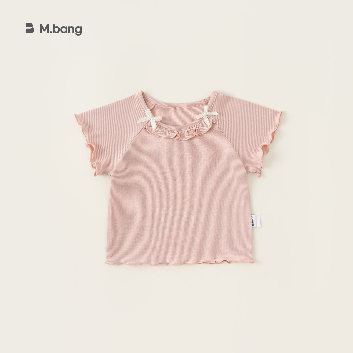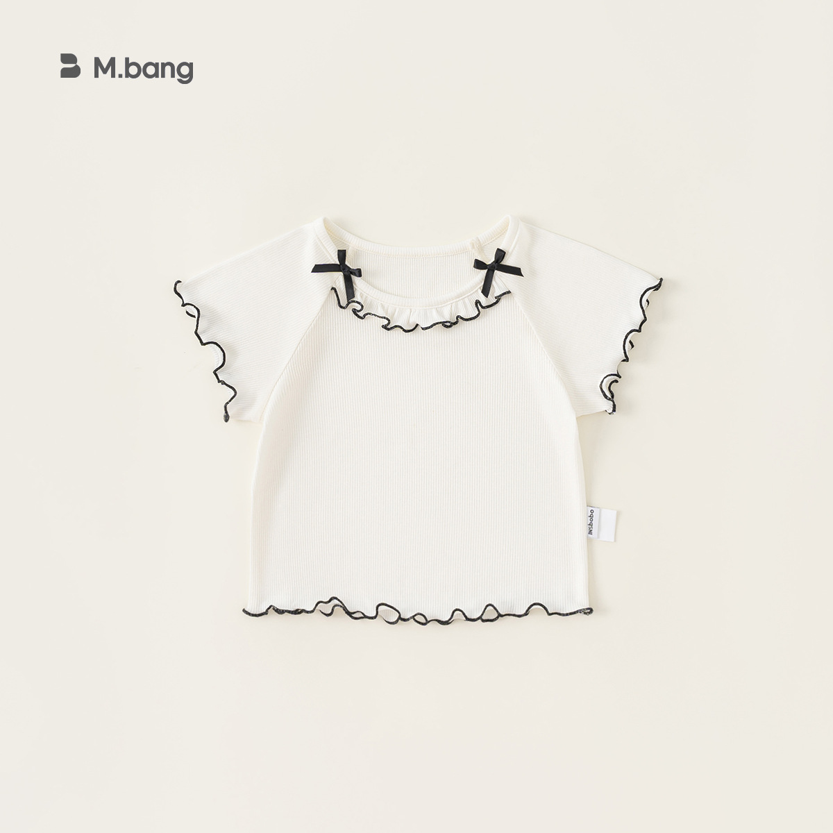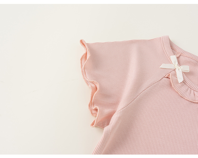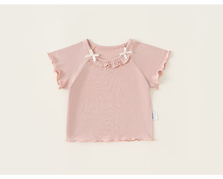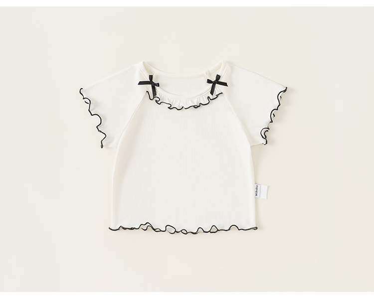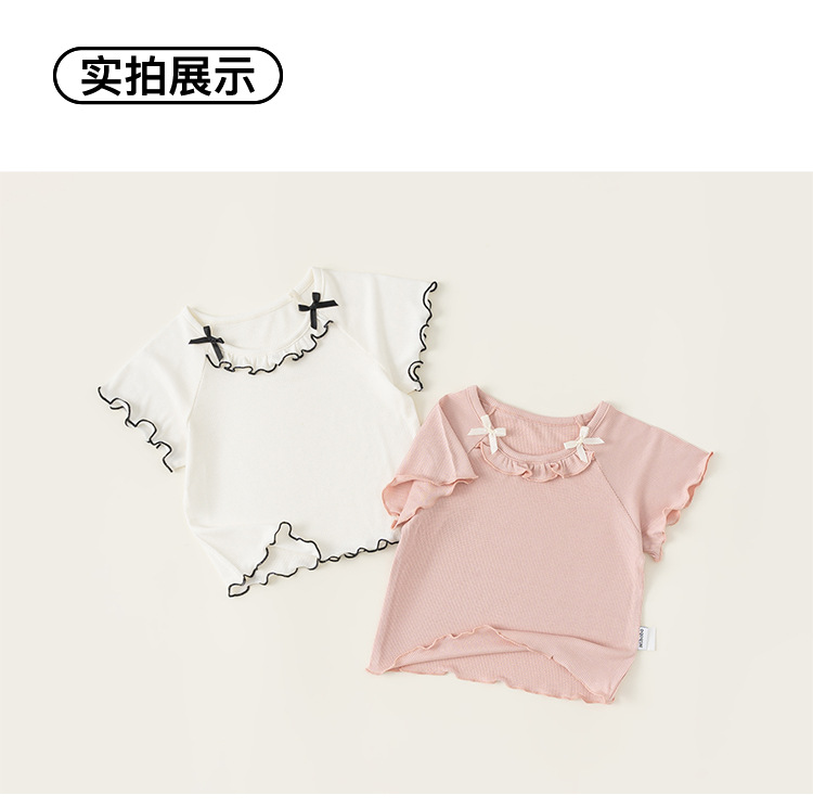 유바오 아동복 여름 신상품 여아 티셔츠 나무잎 레이스 베이스 레이어 아기 리본 반팔 아동 상의