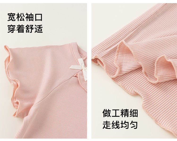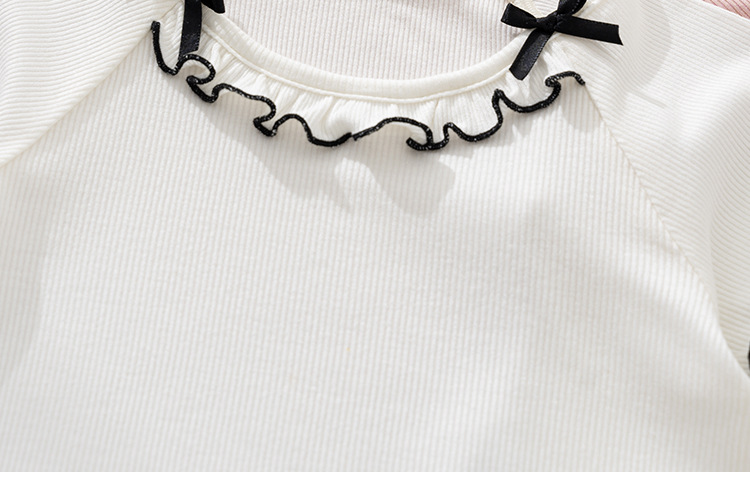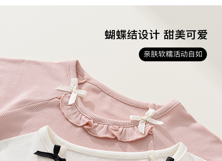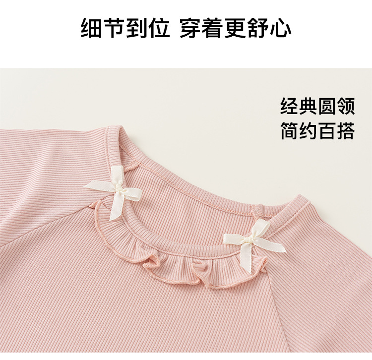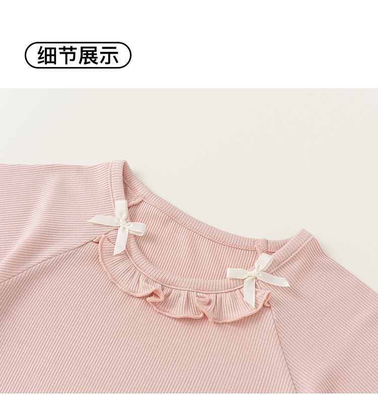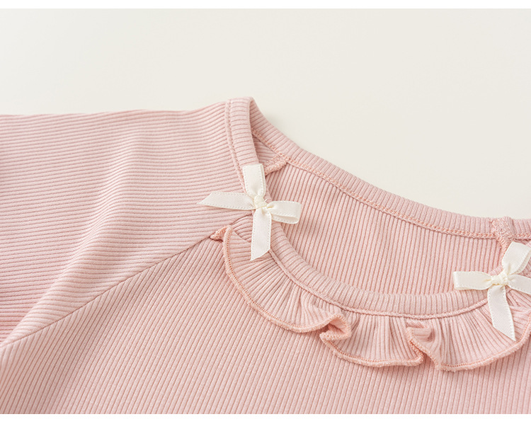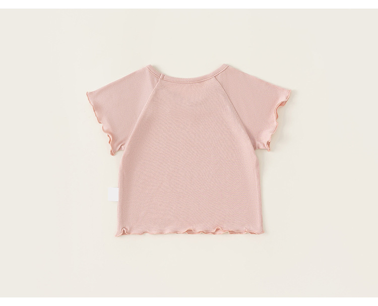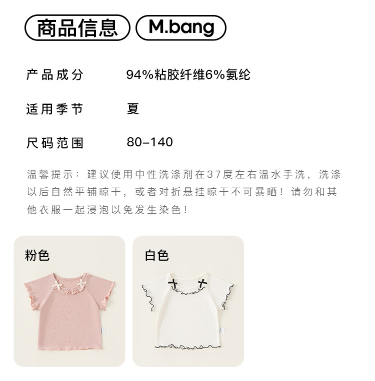 유바오 아동복 여름 신상품 여아 티셔츠 나무잎 레이스 베이스 레이어 아기 리본 반팔 아동 상의