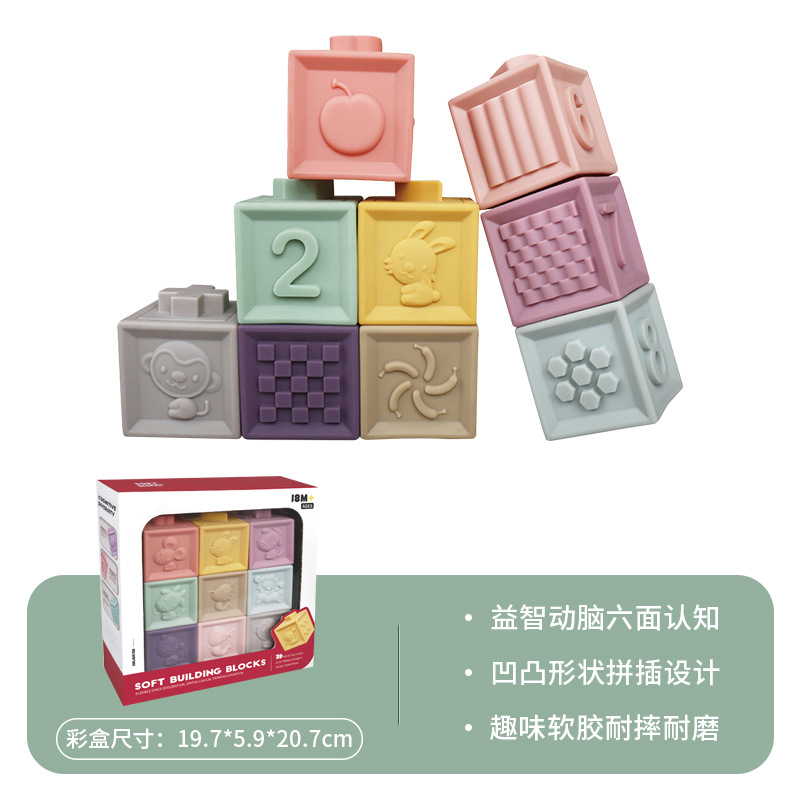 국경 간 어린이 부드러운 고무 빌딩 블록은 에나멜 광장 조기 교육 교육 건물 블록을 넣을 수 있습니다. 높은 파고다 쌓인 음악 장난감스토어 가기