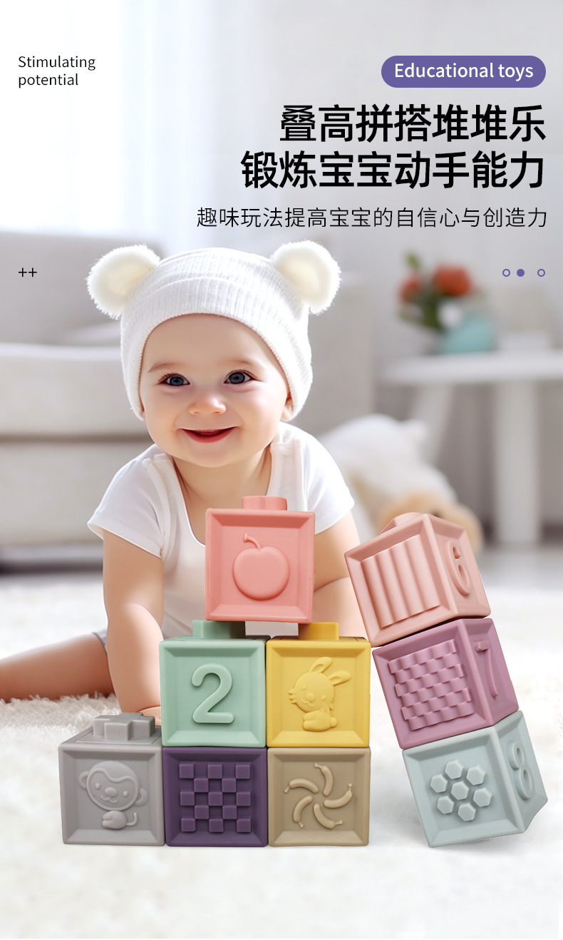 국경 간 어린이 부드러운 고무 빌딩 블록은 에나멜 광장 조기 교육 교육 건물 블록을 넣을 수 있습니다. 높은 파고다 쌓인 음악 장난감