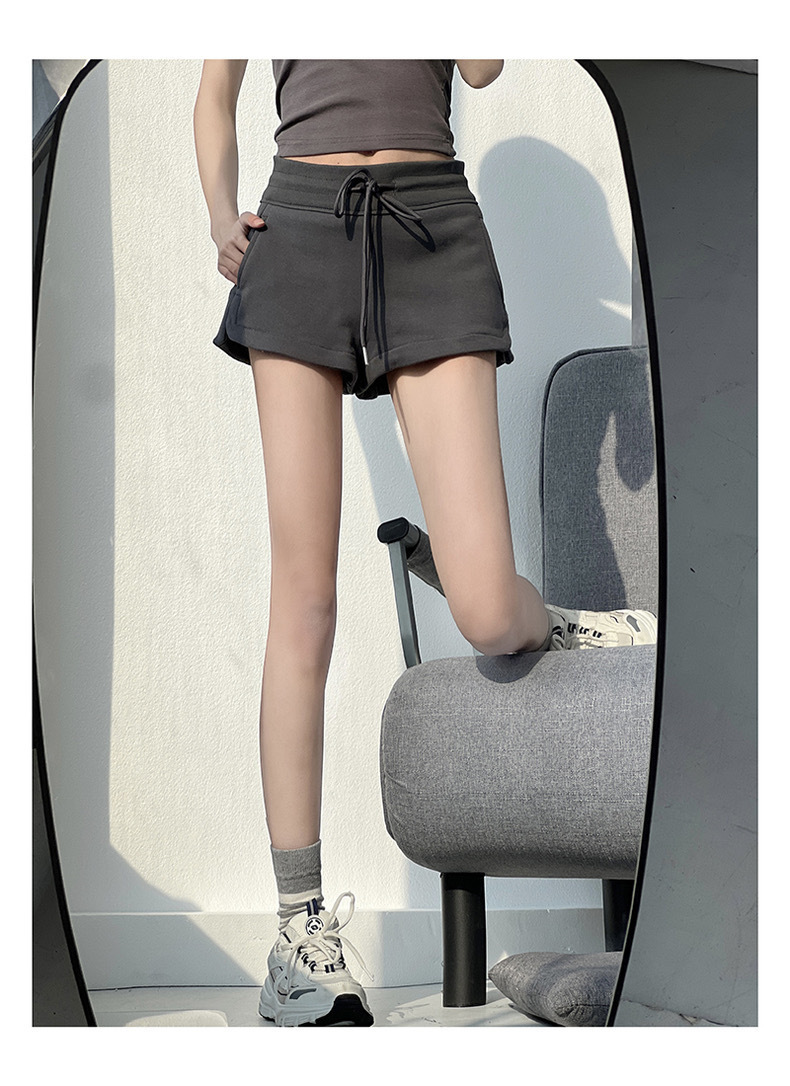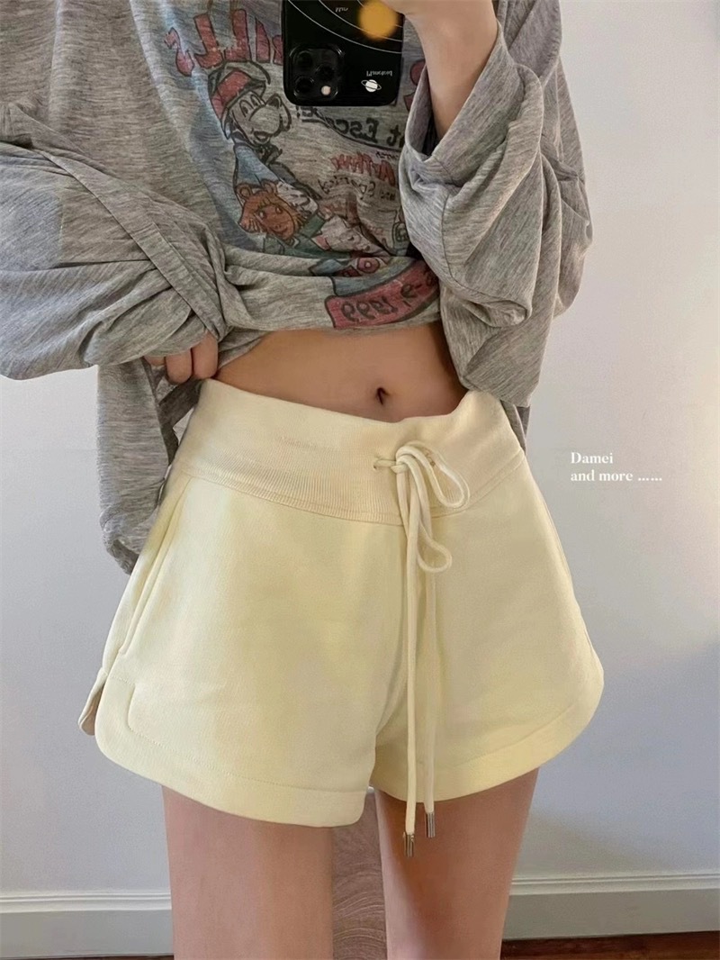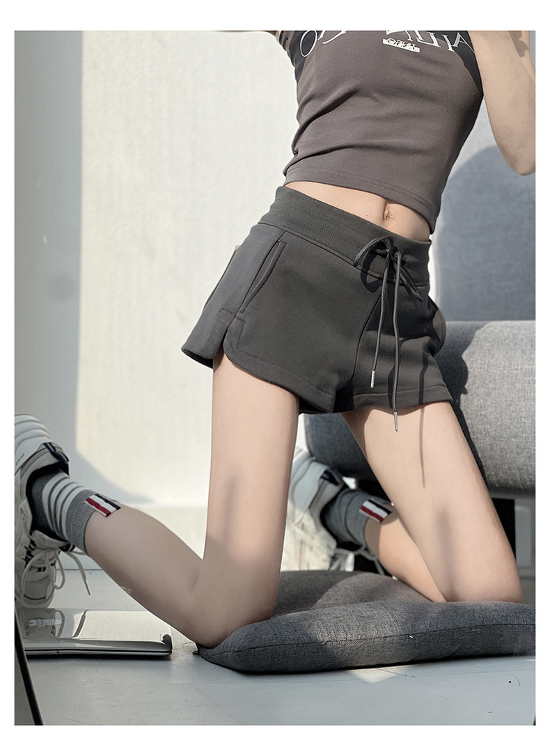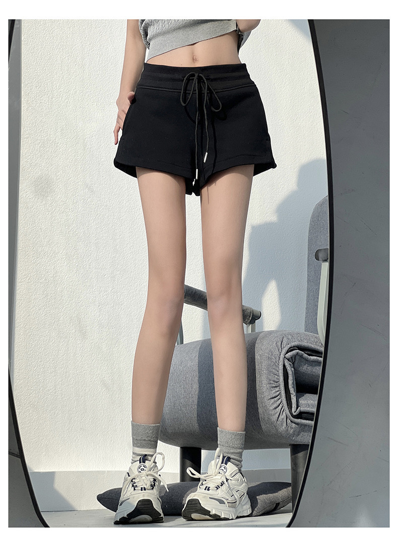 아메리칸 스타일 스트리트 핫 걸 스타일 드로우 스트링 스포츠 반바지 뜨거운 바지 여성용 하이 웨이스트 스포츠 캐주얼 반바지 슬림 핏 스트레이트 바지