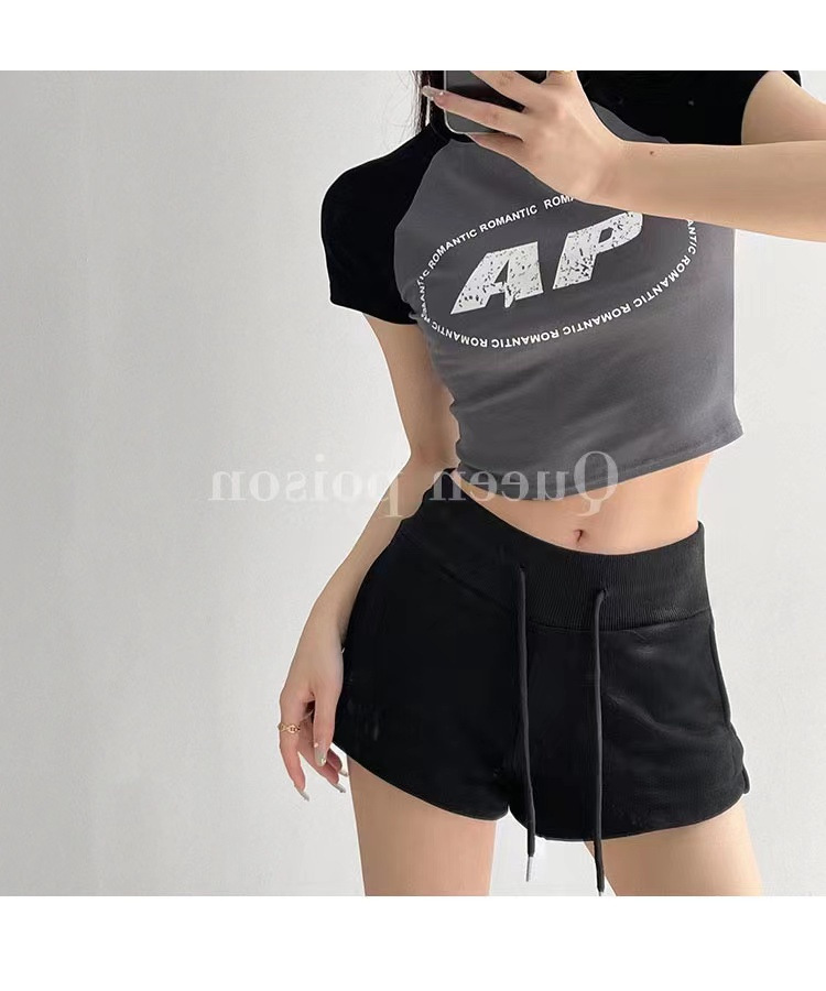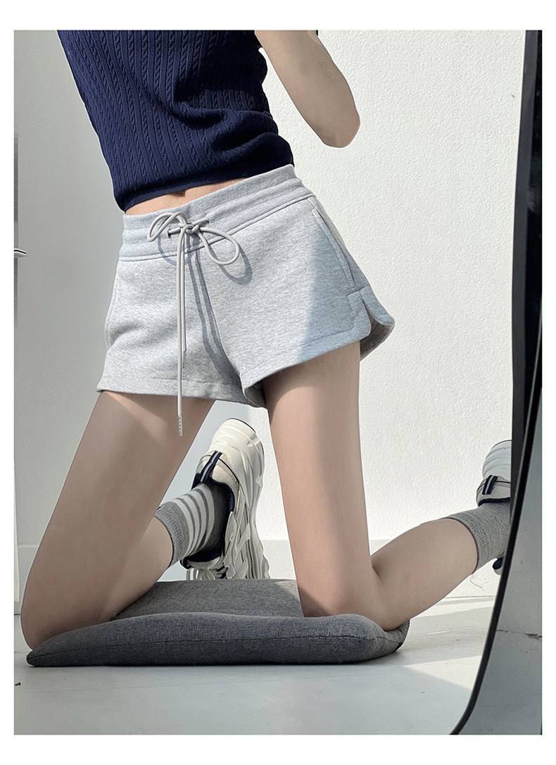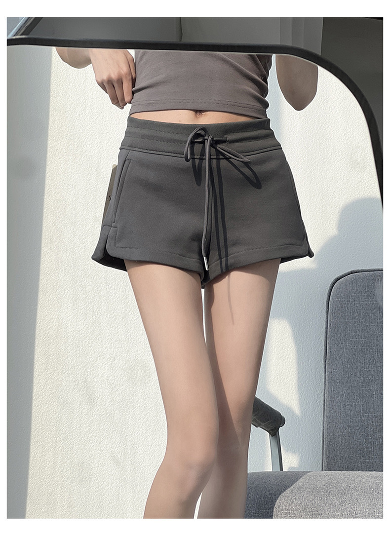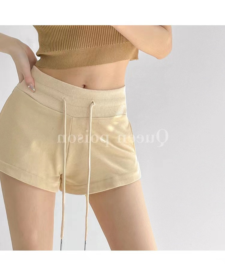 아메리칸 스타일 스트리트 핫 걸 스타일 드로우 스트링 스포츠 반바지 뜨거운 바지 여성용 하이 웨이스트 스포츠 캐주얼 반바지 슬림 핏 스트레이트 바지