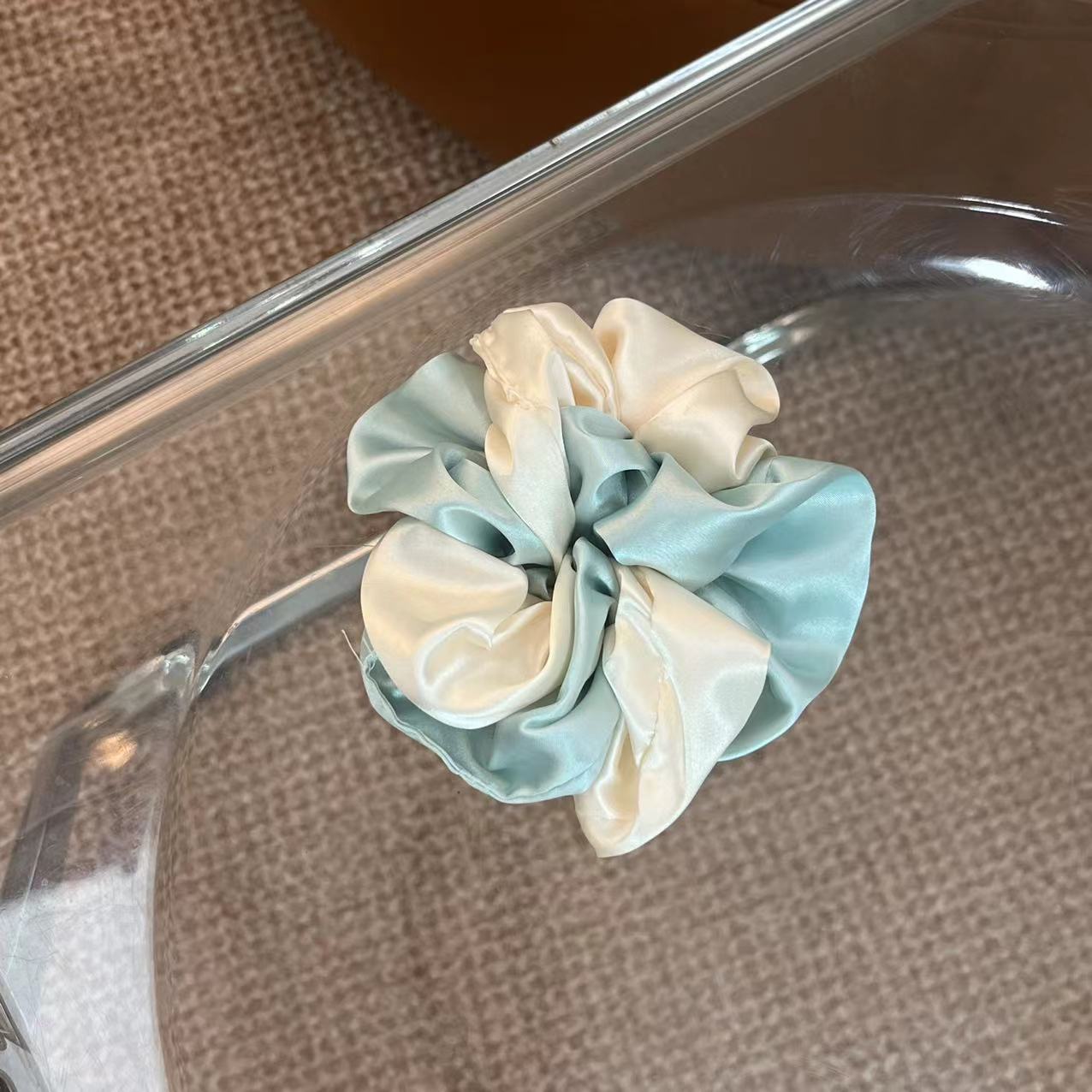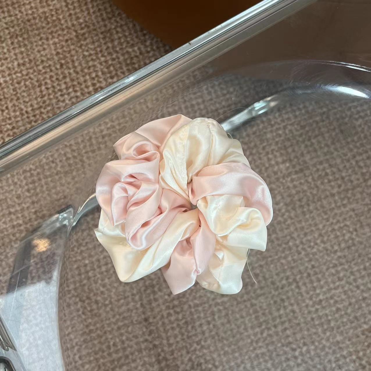 2024 광택 우아한 새틴 더블 콜론 헤어 링 하이 퀄리티 진주 빛 새틴 헤어 로프 고급 헤어 플라워