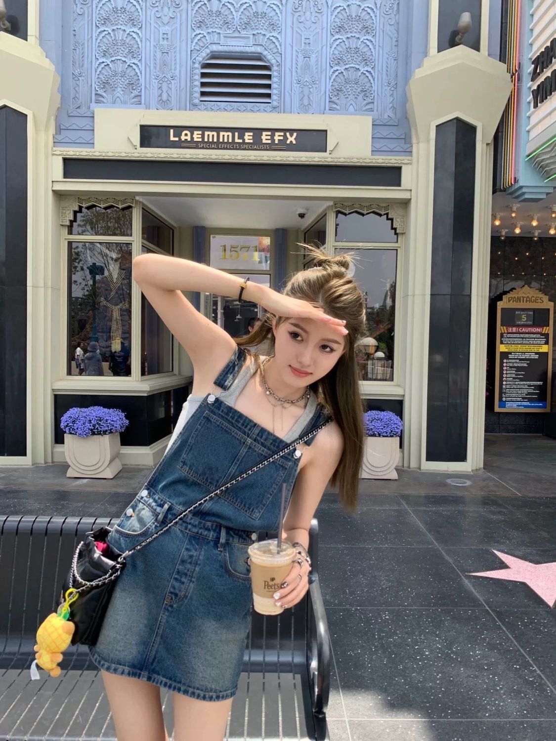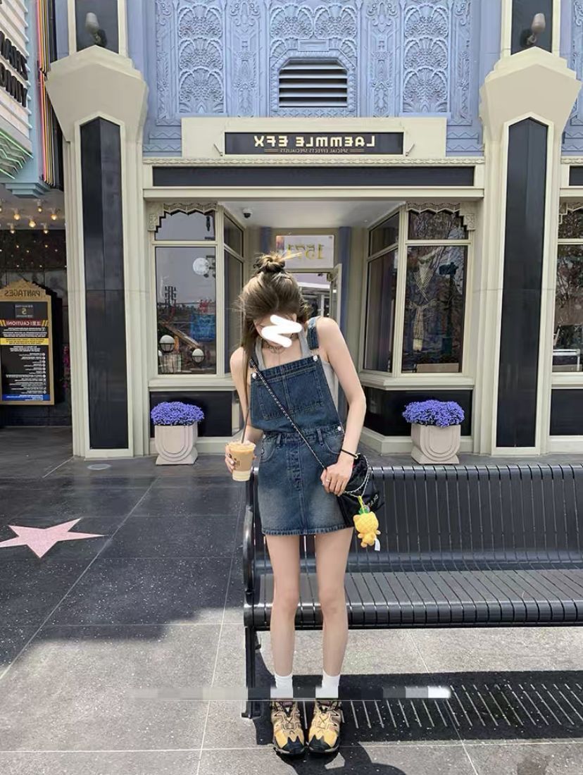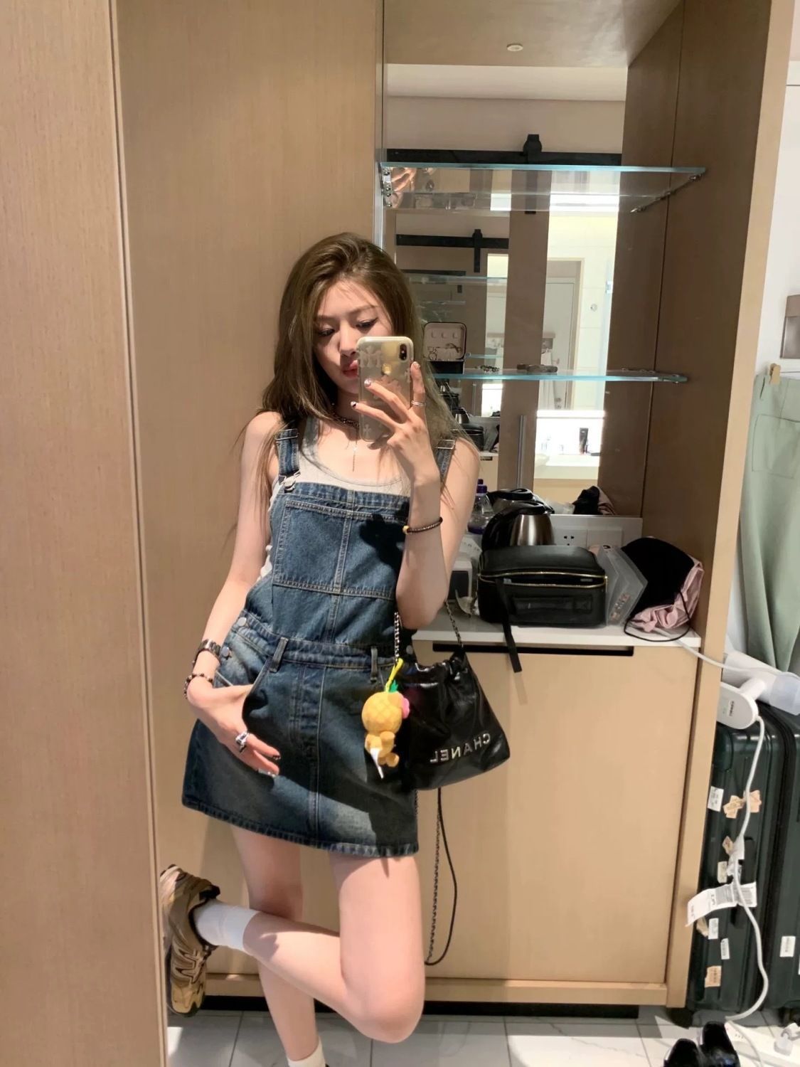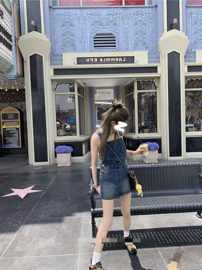 아메리칸 스타일 레트로 느슨한 나이 감소 데님 스트브 원피스 여성 여름 새로운 달콤한 쿨 스파이스 소녀 올 매치 슬림 룩 원피스스토어 가기