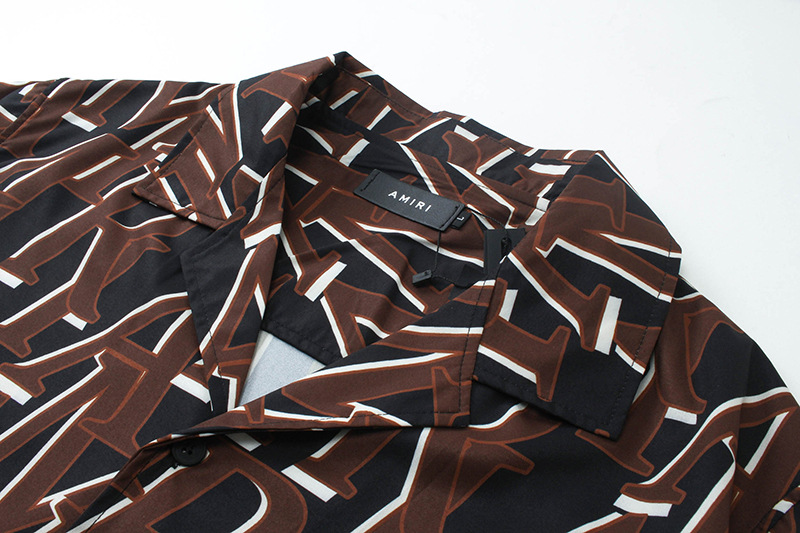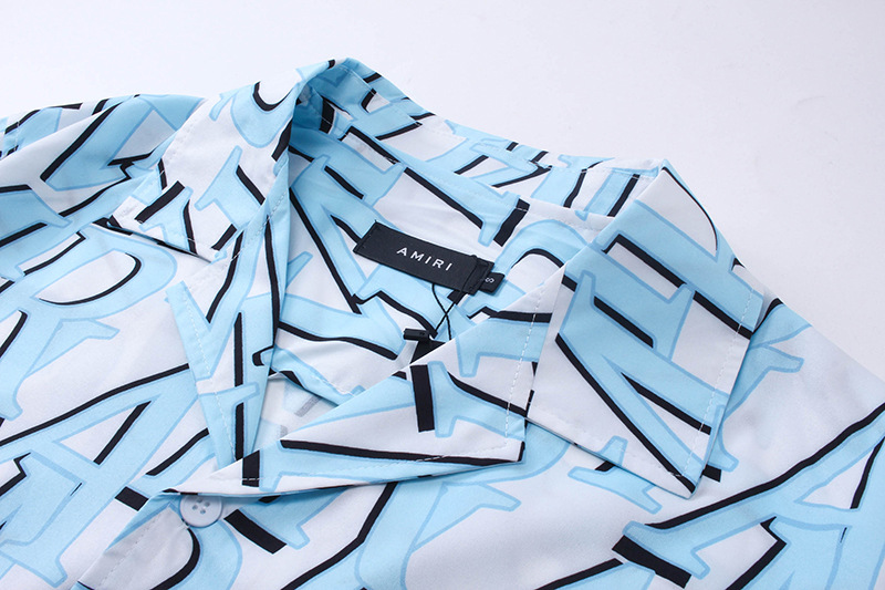 대외 무역 싱글 여름 유럽과 미국의 작은 패션 남성 am 편지 전체 인쇄 짧은 소매 셔츠 남성과 여성의 느슨한 올 매치스토어 가기