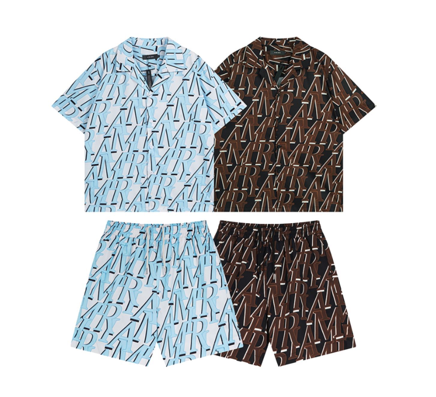 대외 무역 싱글 여름 유럽과 미국의 작은 패션 남성 am 편지 전체 인쇄 짧은 소매 셔츠 남성과 여성의 느슨한 올 매치