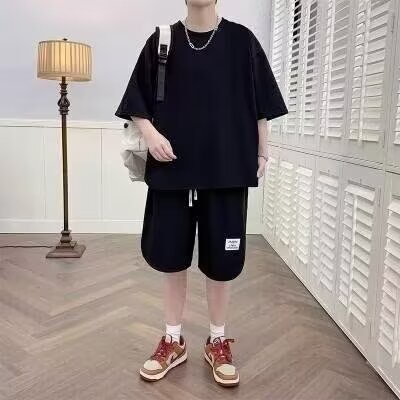 2024 스포츠웨어 세트 남자 여름 반팔 T 캐주얼 탄성 허리 반바지 투피스 한국 트렌디스토어 가기