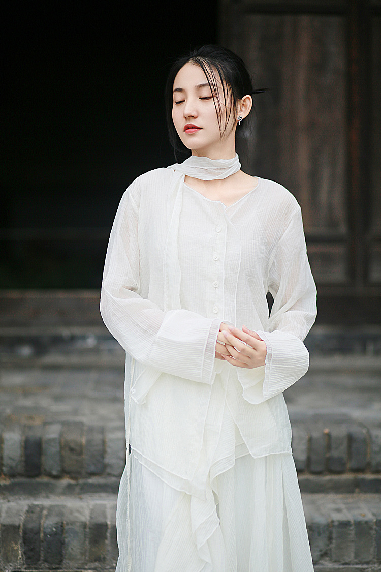 텐셀 러플 셔츠, 탑, 스커트 슈트, 시원하고 부드러운 스타일