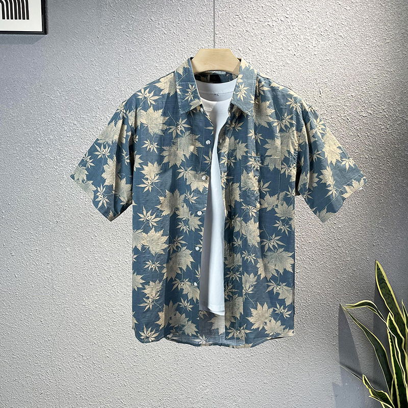 2024 여름 패션 캐주얼 프린트 반팔 셔츠 트렌디 얇은 하이 엔드 센스 멋진 성격 남성 셔츠스토어 가기