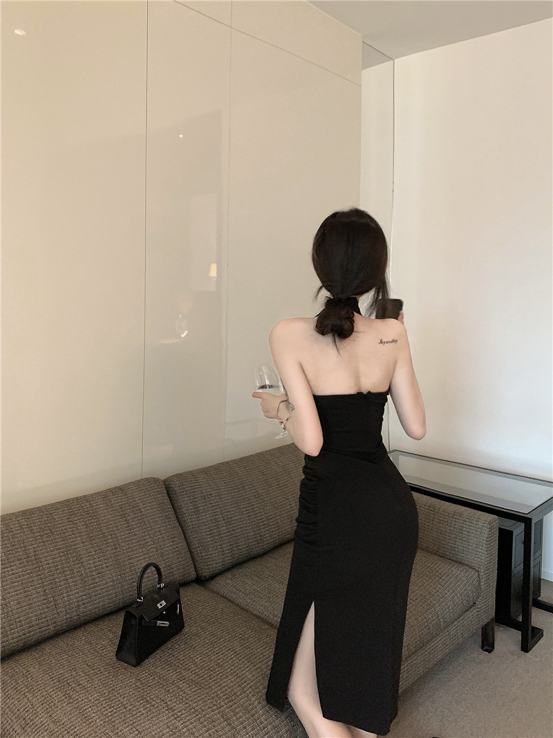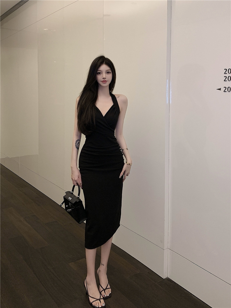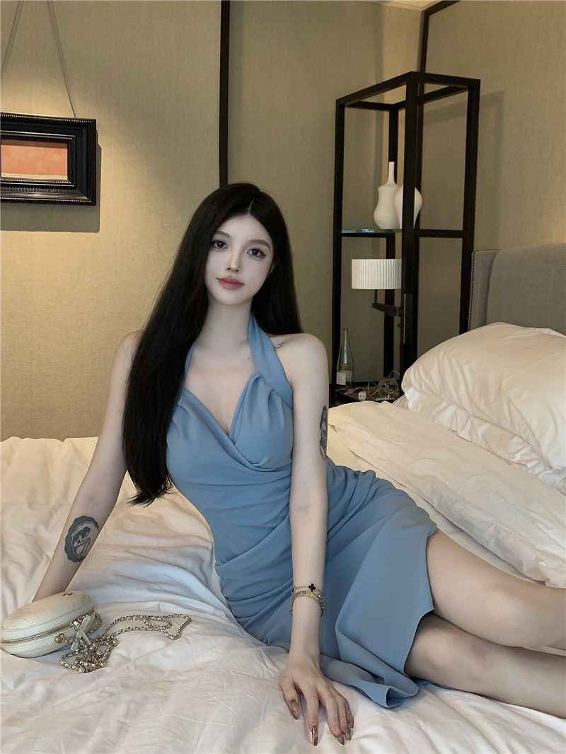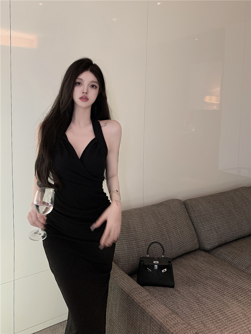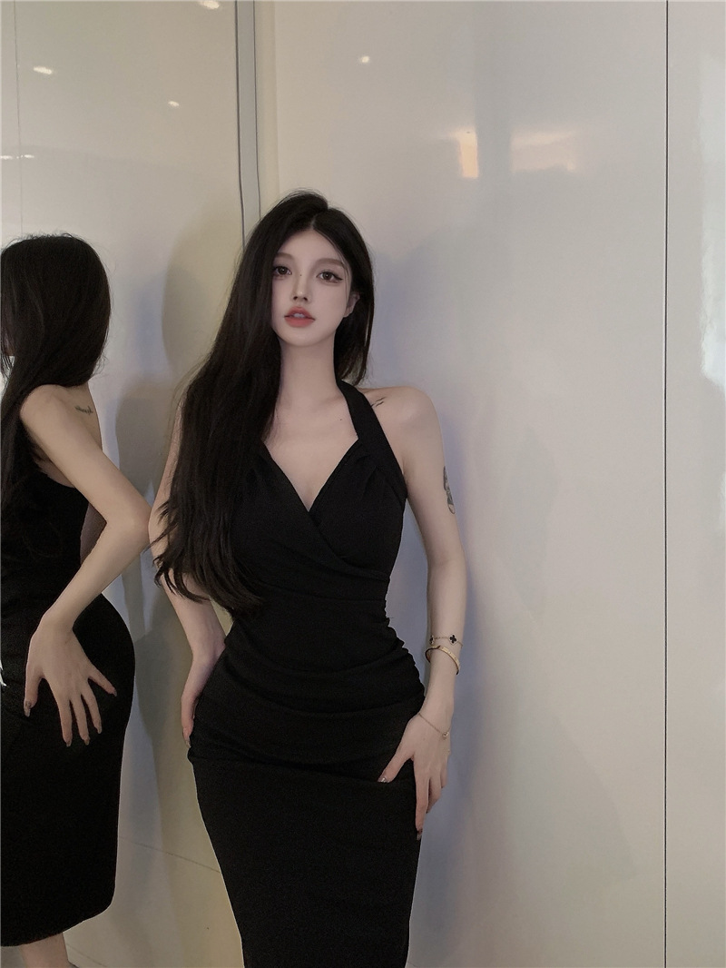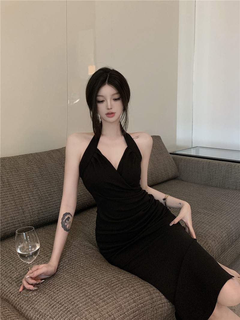 기질 로얄 자매 스타일 순수한 욕망 섹시한 목 원피스 여성의 여름 틈새 디자인 센스 타이트 허리 유행 엉덩이 스커트