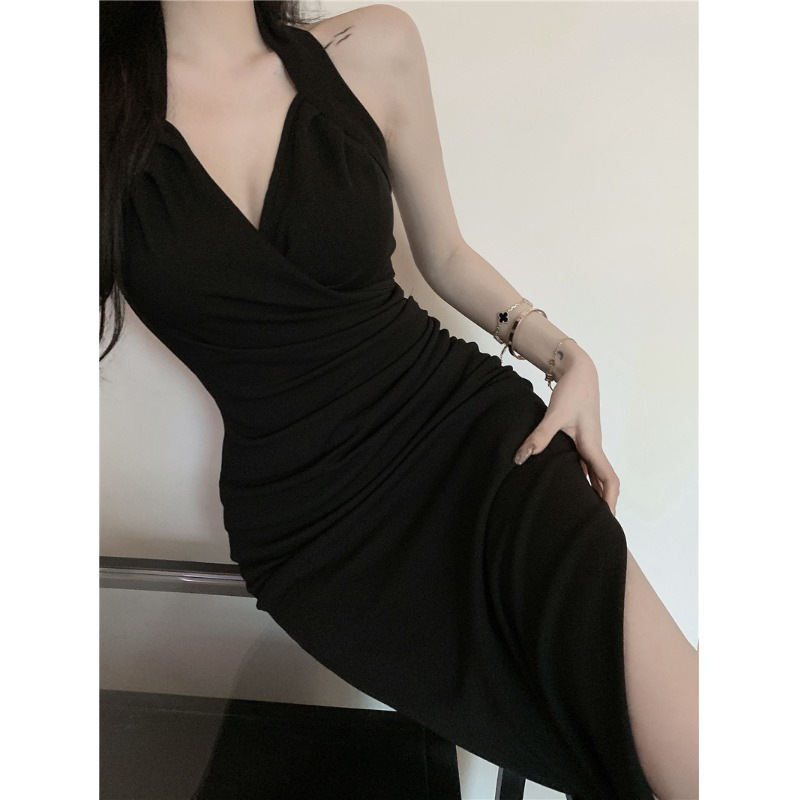 기질 로얄 자매 스타일 순수한 욕망 섹시한 목 원피스 여성의 여름 틈새 디자인 센스 타이트 허리 유행 엉덩이 스커트스토어 가기