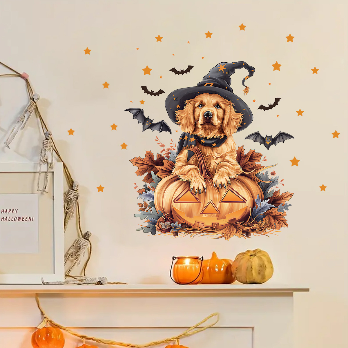 할로윈 호박 랜턴 마녀 모자 골든 리트리버 자체 접착 벽 스티커 룸 축제 레이아웃 장식 스티커 BR0599Q스토어 가기